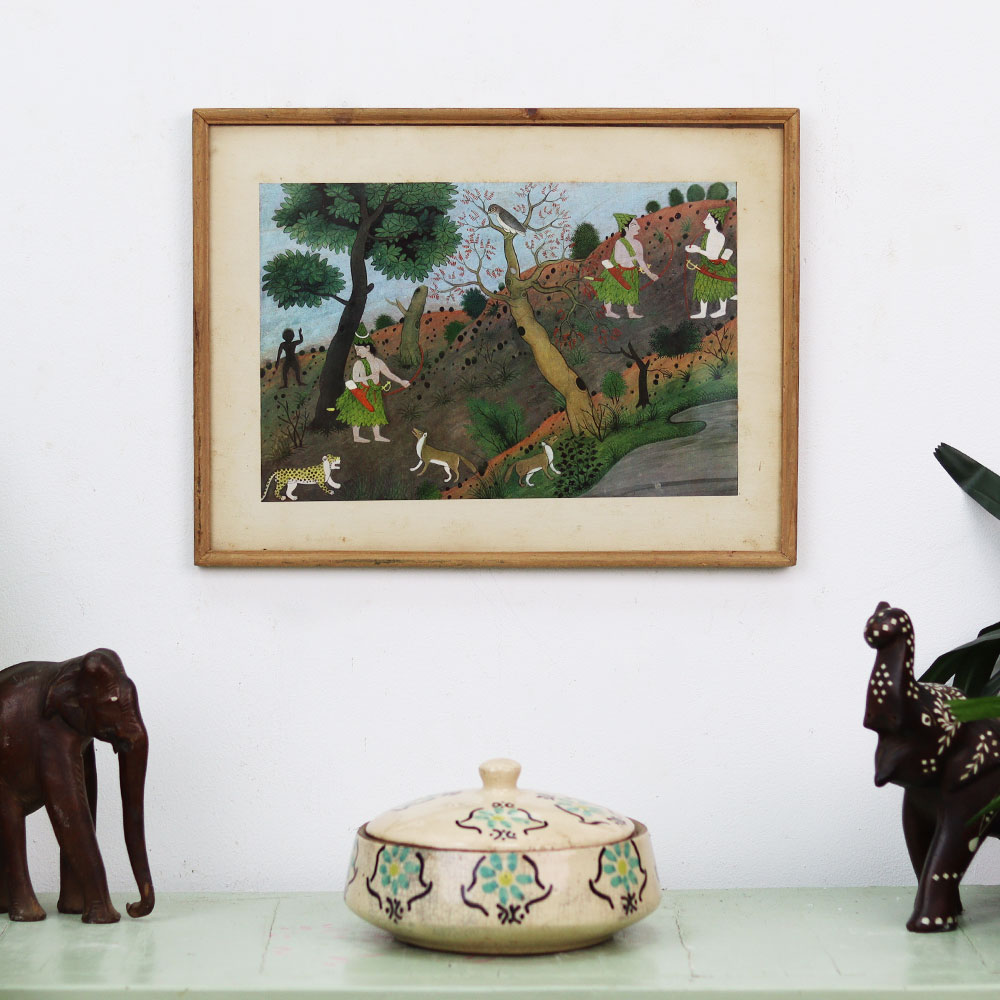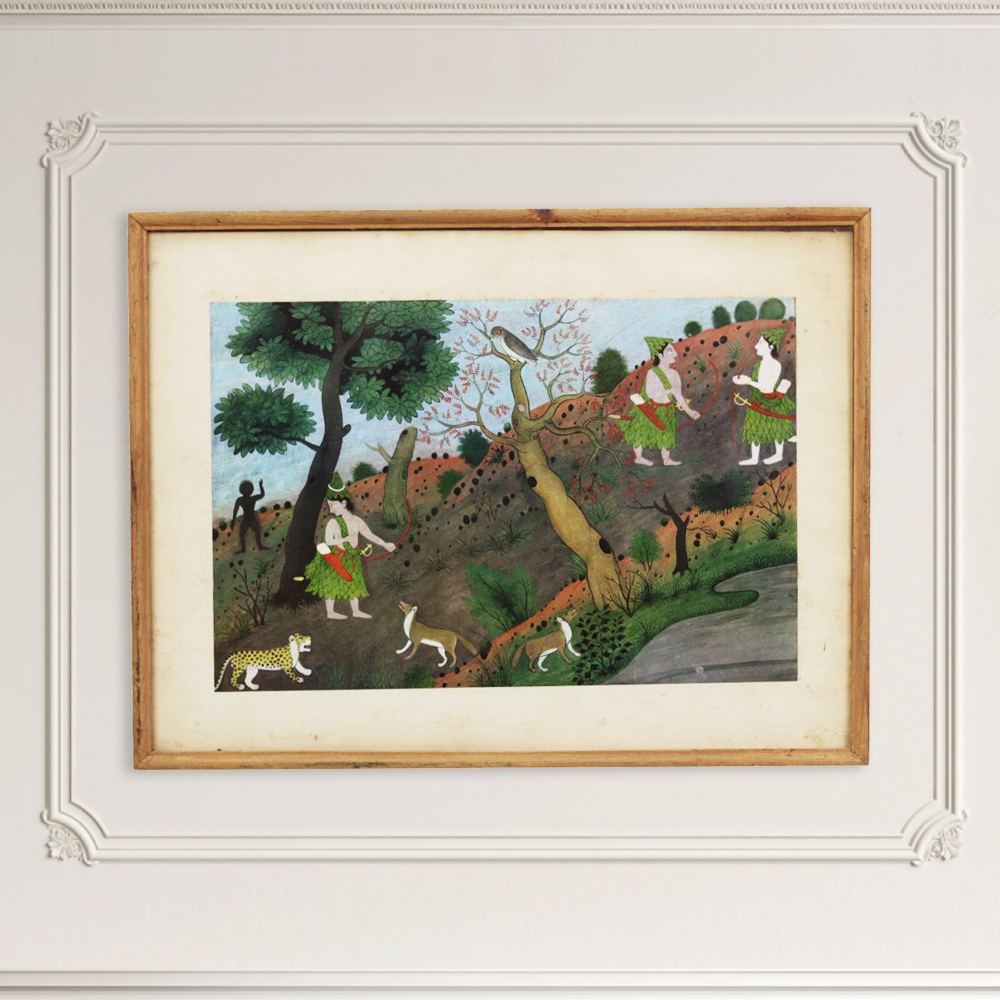 Immerse yourself in the timeless allure of Pahadi Kangra art with this exquisite print. Masterfully crafted by the renowned artists of the Kangra School, this piece showcases the region's rich cultural heritage and breathtaking natural landscapes. This Pahadi Kangra print is a true testament to the skill and artistry of the region's most celebrated painters. Lose yourself in the serene landscapes, the delicate flora, and the captivating narratives that unfold before you. Each brushstroke is a window into a world of wonder, inviting you to explore the cultural tapestry of this extraordinary region. Whether you're a seasoned art collector or simply seeking to infuse your space with a touch of timeless elegance, this Pahadi Kangra print is a must-have. It's the perfect way to bring the beauty of the Himalayas into your home, elevating your decor and igniting your imagination. Immerse yourself in the captivating world of Pahadi Kangra art and let this stunning piece transport you to a realm of pure artistic brilliance.