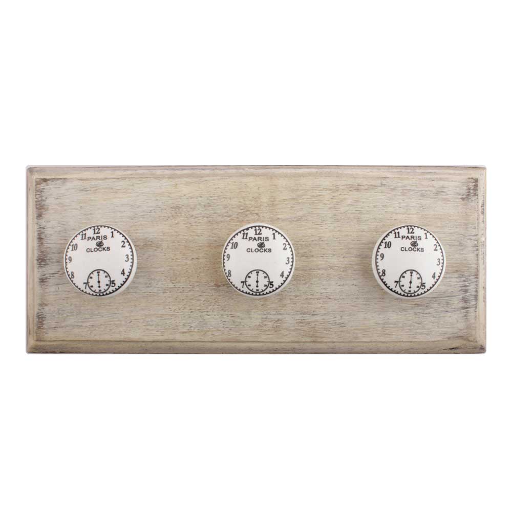 Paris Clocks Numerals Flat Ceramic Wooden Hooks. A Perfect Complement to the Soft Tone of the Wood are these White Traditional Hat and Coat Hook Made of Genuine Porcelain and Brass. It can be used to Hang Jewelry, Leashes, Towels, Scarves, Light Weight Sweaters, Caps etc.