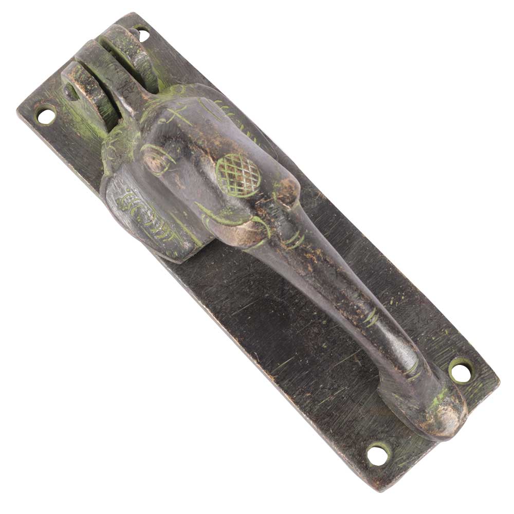 Attractive brass elephant trunk door knocker. You lift the trunk to make it knock .This really great for your Front Door Knocker or any decor.