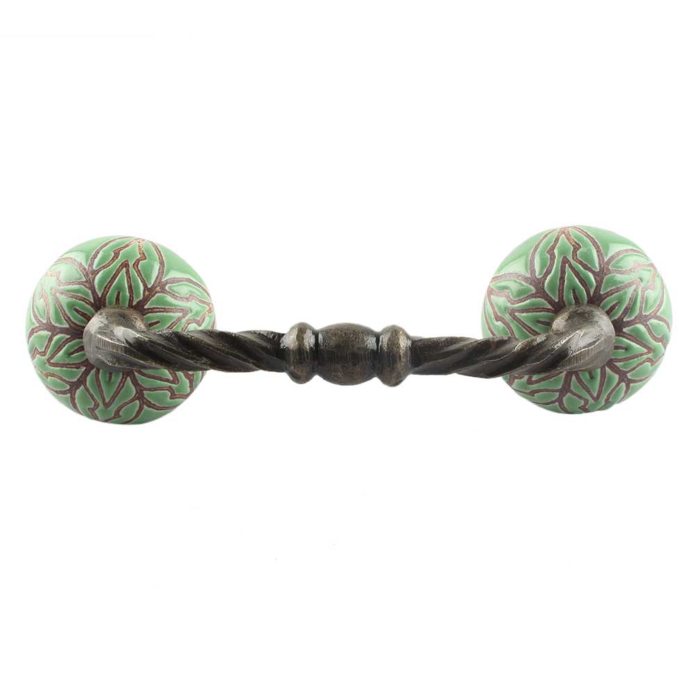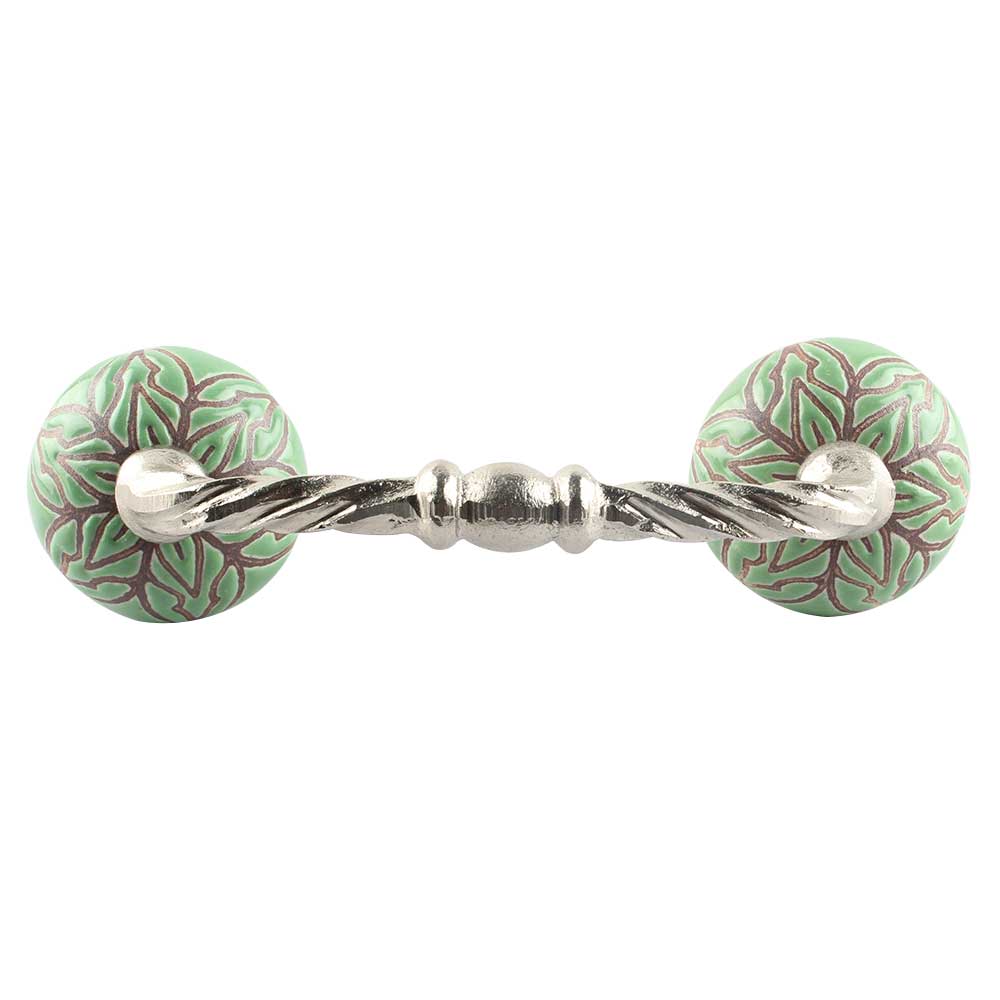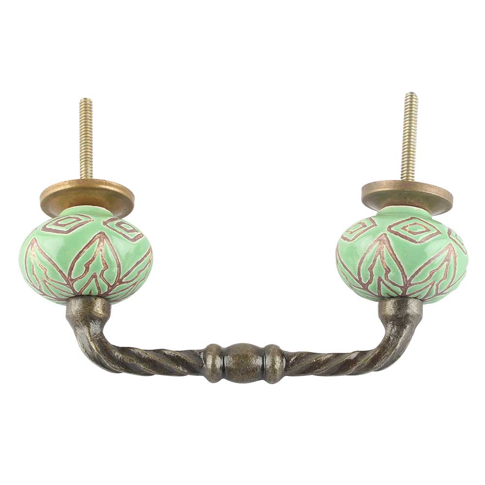 Pea Green Amarylis Floral Etched Ceramic Cut Bridge Handle. Ideal for Drawer, Dresser, Cabinet, Wardrobe, Cupboard and Almirah etc.