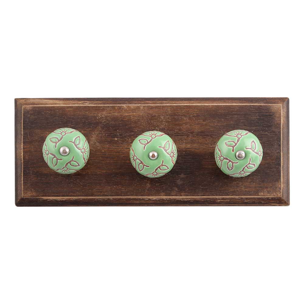 Pea Green Calla Lily Etched Ceramic Wooden Hook. A Perfect Complement to the Soft Tone of the Wood are these White Traditional Hat &Amp; Coat Hook Made of Genuine Porcelain and Brass. It can be use to Hang Jewellery, Leashes, Towels, Scarves, Light Weight Sweaters, Caps Etc.