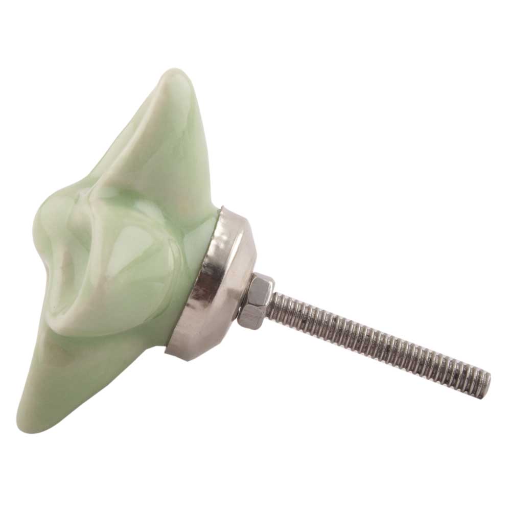 Enhance your furniture with the Pea Green Ceramic Flower Cabinet Knob. This elegantly crafted knob showcases a charming flower shape in a gentle pea green shade, adding a fresh and vibrant touch to your cabinets, drawers, and dressers. It's an excellent way to introduce a splash of color to any room, seamlessly fitting into various home decor styles.