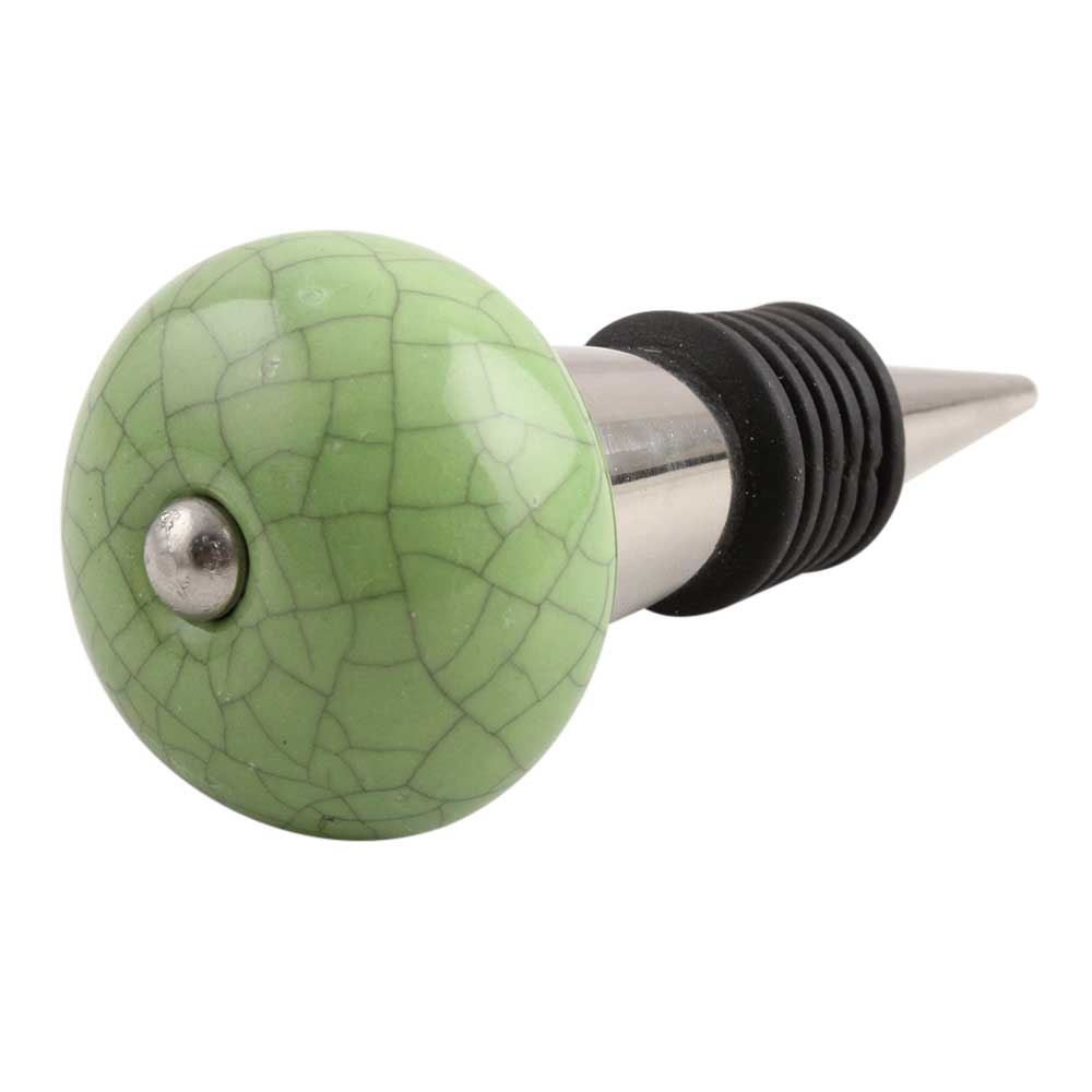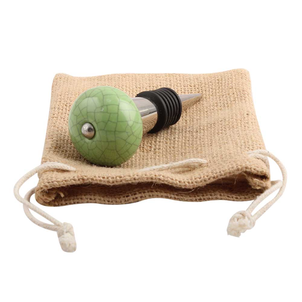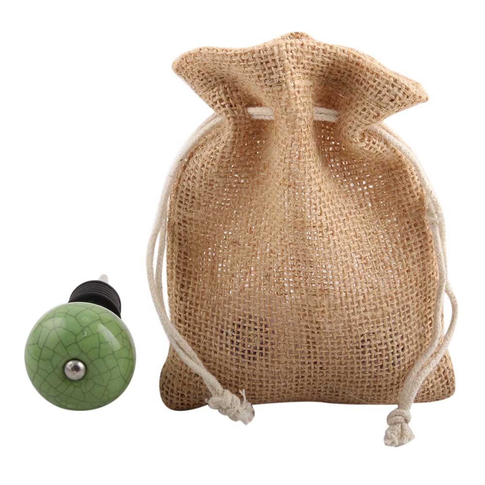 Pea Green Crackle Ceramic Wine Stopper.zinc alloy wine bottle stopper with attractive Jute Bag Packaging.