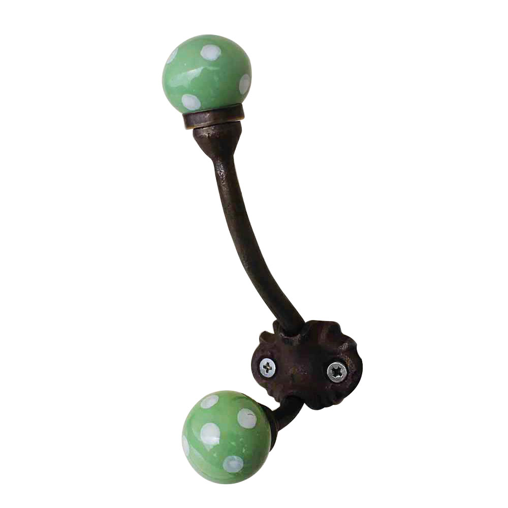 Pea Green Dot Iron Hook-Ehg-28. When Put on Wall or Cabinet It Gives A Sturdy Look. This Hook is Strong Enough to Hold Your Cloths, Keys, Tea Cups, Coffee Mugs, Hand Towels Etc.