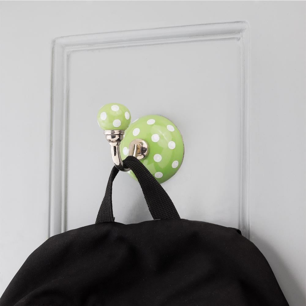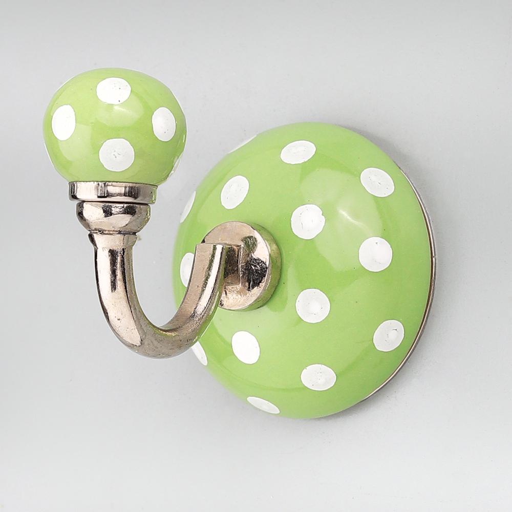 Pea Green Dotted Hook. When Put on Wall or Cabinet It is An Art in Itself. This Hook is Strong Enough to Hold Your Cloths, Keys, Tea Cups, Coffee Mugs, Hand Towels Etc.