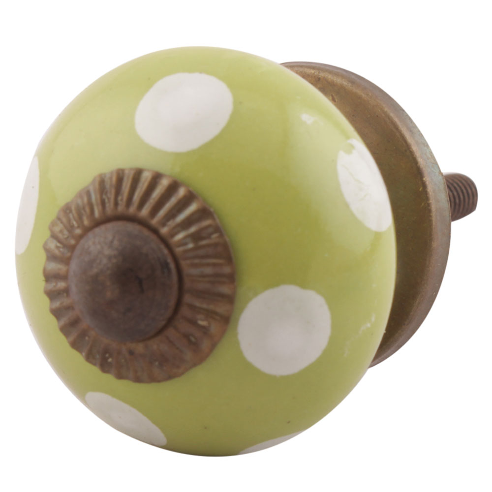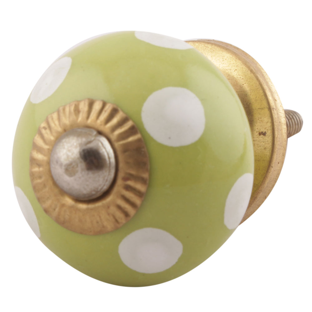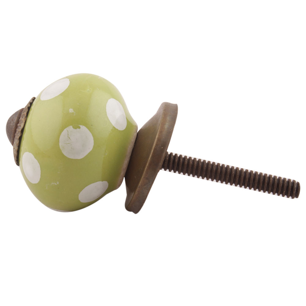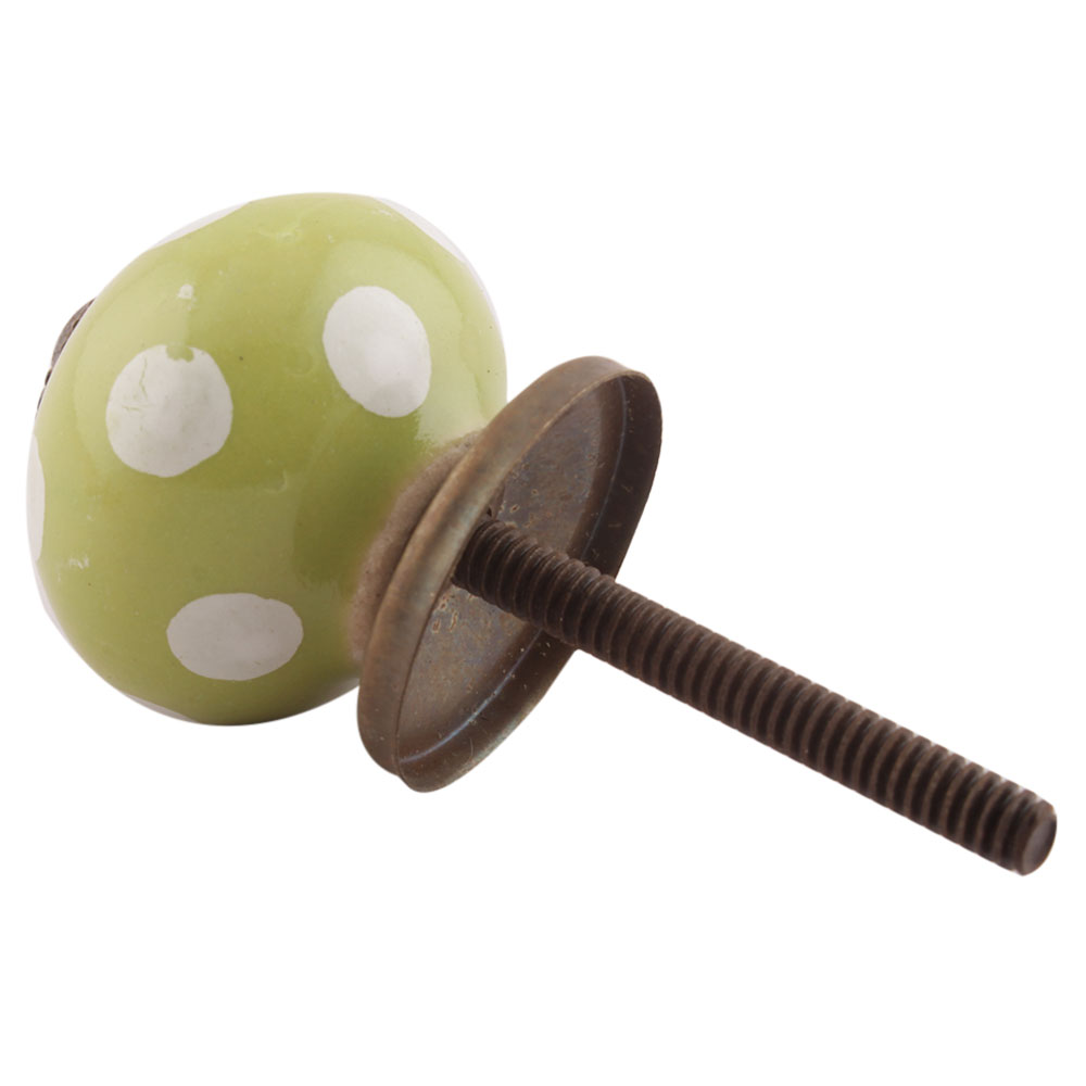 Pea Green Dotted Small Ceramic Drawer Knobs. Ideal for Drawer, Dresser, Cabinet, Wardrobe, Cupboard and Almirah.