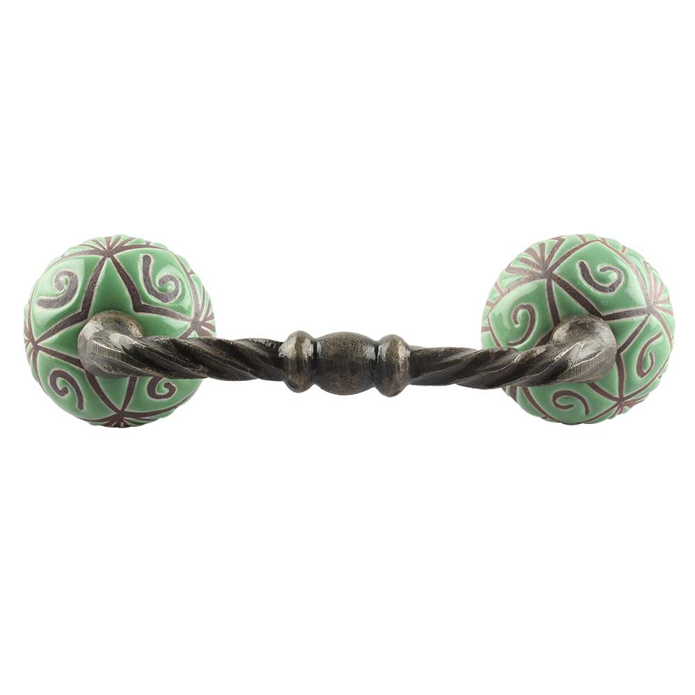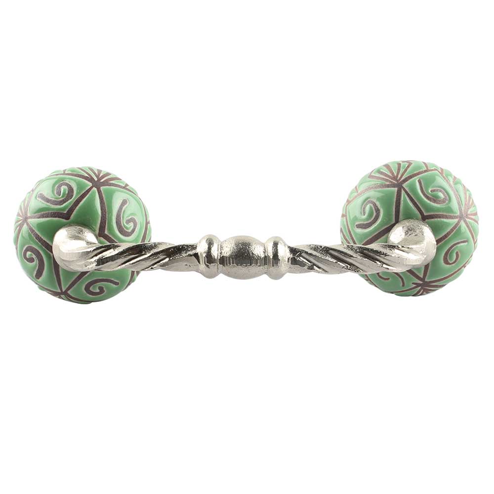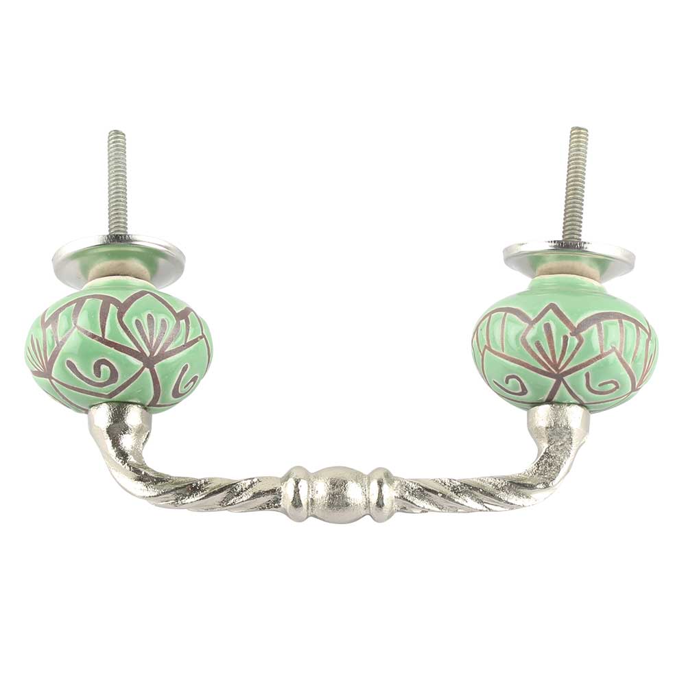 Pea Green Etched Ceramic Cut Bridge Handle. Ideal for Drawer, Dresser, Cabinet, Wardrobe, Cupboard and Almirah etc.