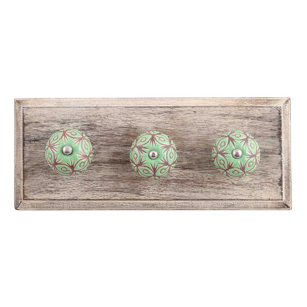 Pea Green Etched Ceramic Wooden Hook. A Perfect Complement to the Soft Tone of the Wood are these White Traditional Hat &Amp; Coat Hook Made of Genuine Porcelain and Brass. It can be use to Hang Jewellery, Leashes, Towels, Scarves, Light Weight Sweaters, Caps Etc.