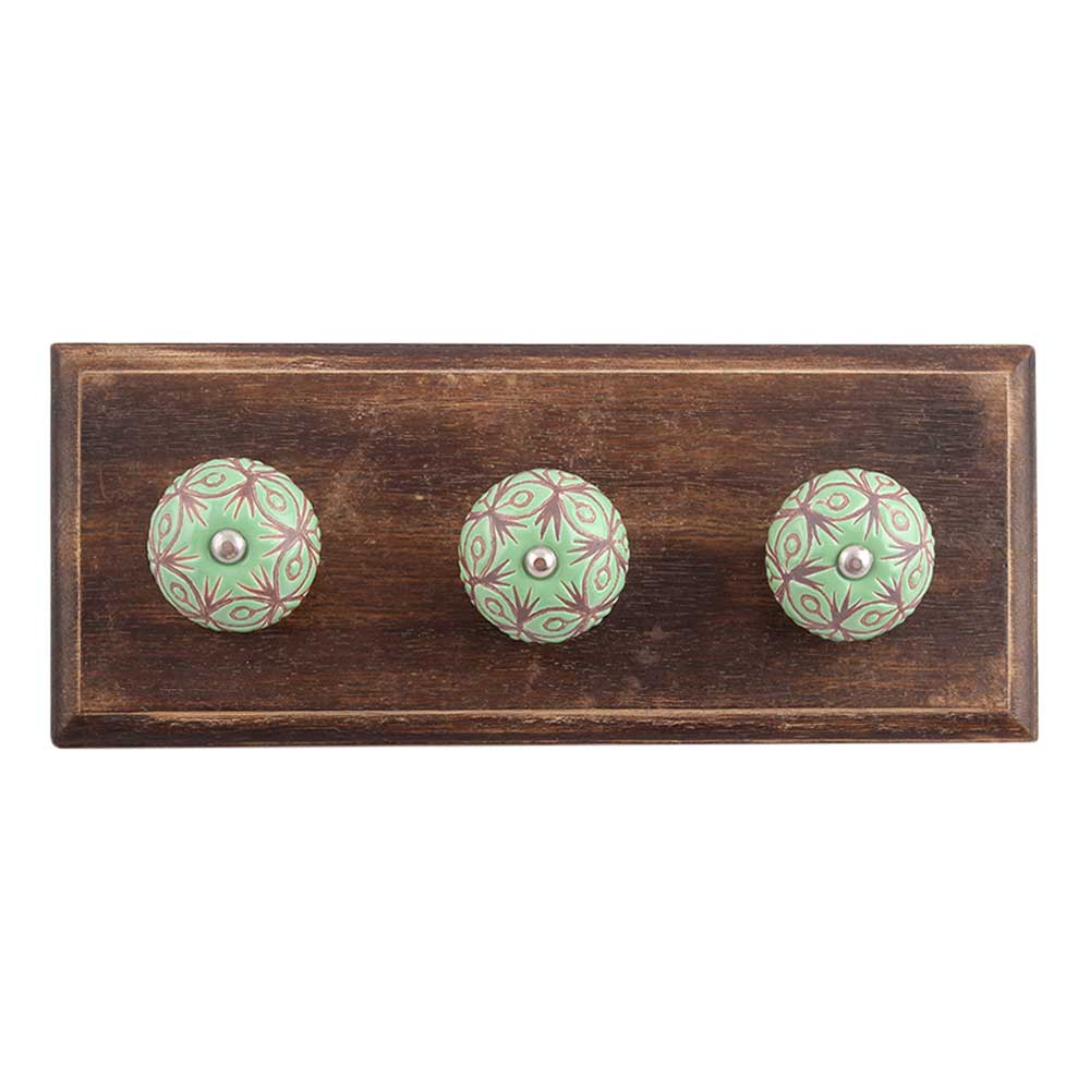 Pea Green Etched Ceramic Wooden Hook. A Perfect Complement to the Soft Tone of the Wood are these White Traditional Hat &Amp; Coat Hook Made of Genuine Porcelain and Brass. It can be use to Hang Jewellery, Leashes, Towels, Scarves, Light Weight Sweaters, Caps Etc.