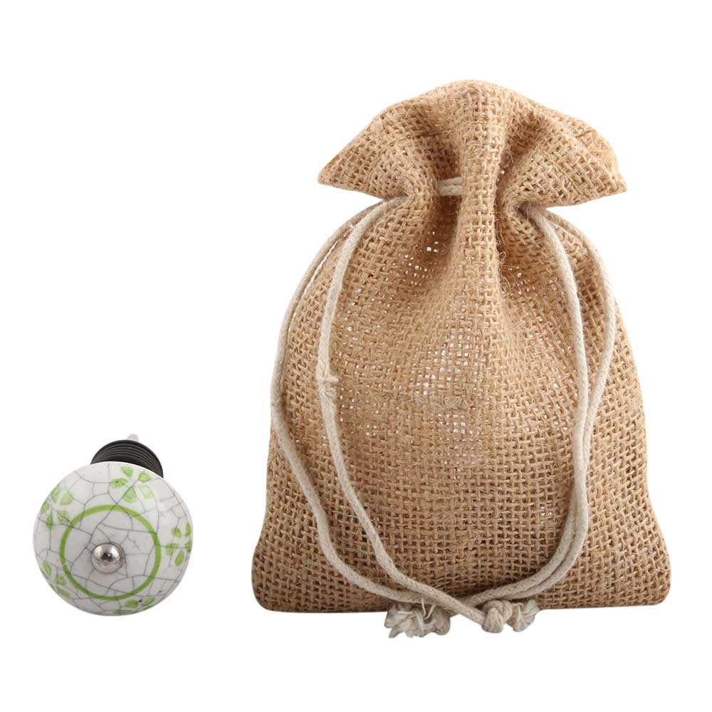 Pea Green Floral Crackle Ceramic Wine Stopper. Zinc Alloy Wine Bottle Stopper with Attractive Jute Bag Packaging.