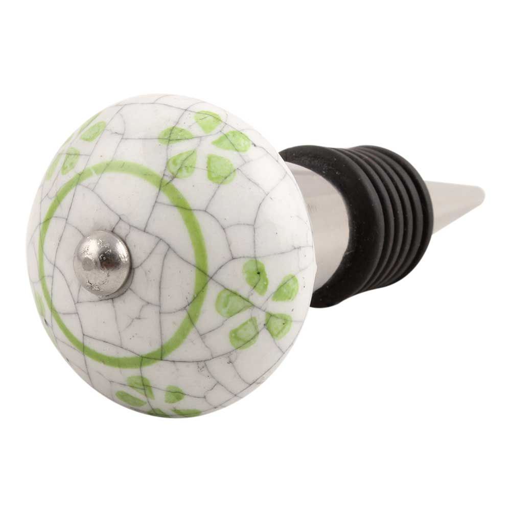 Pea Green Floral Crackle Ceramic Wine Stopper