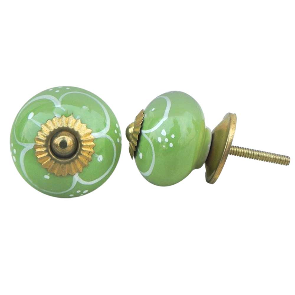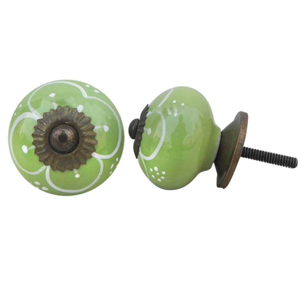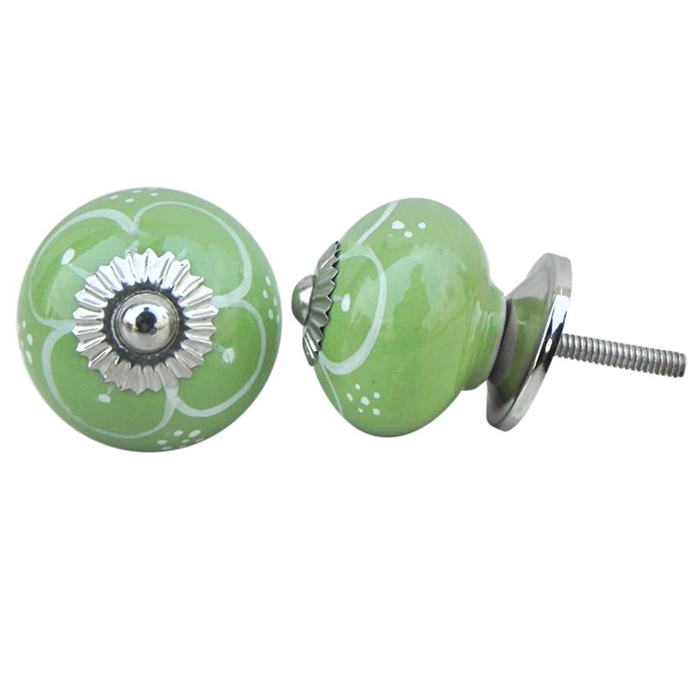 Pea Green Flower ceramic knob. Ideal for kitchen cabinets, kitchen drawers, dining room, bed room, chest drawers, dressing tables, almirah