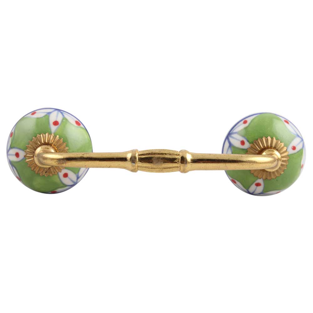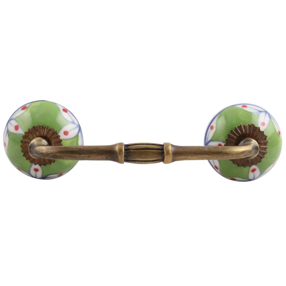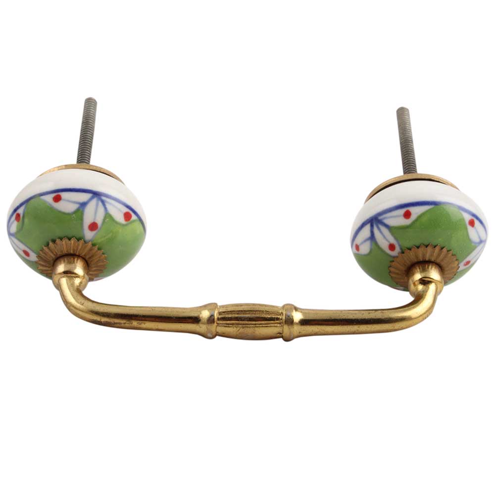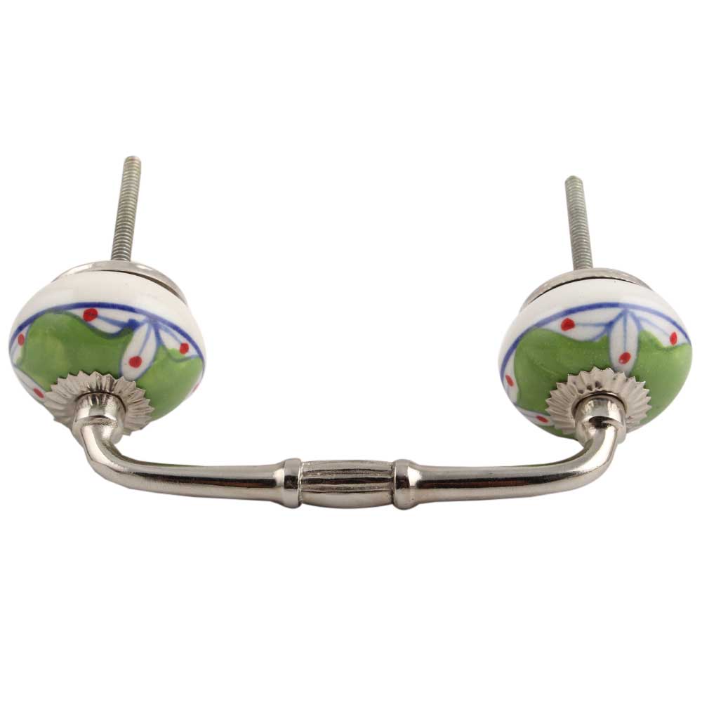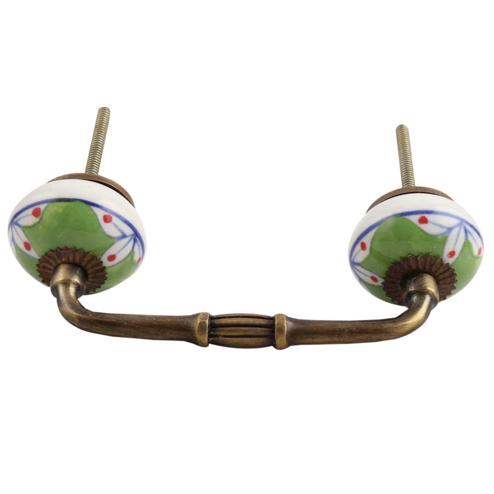 Pea Green Leaf Ceramic Bridge Handle. Ideal for Drawer, Dresser, Cabinet, Wardrobe, Cupboard and Almirah.