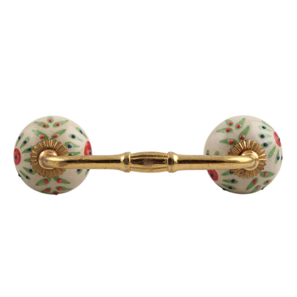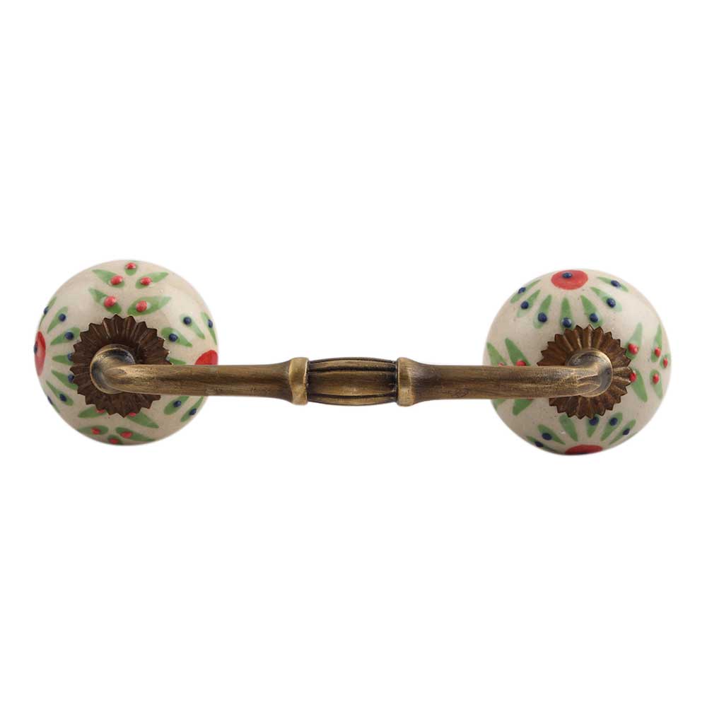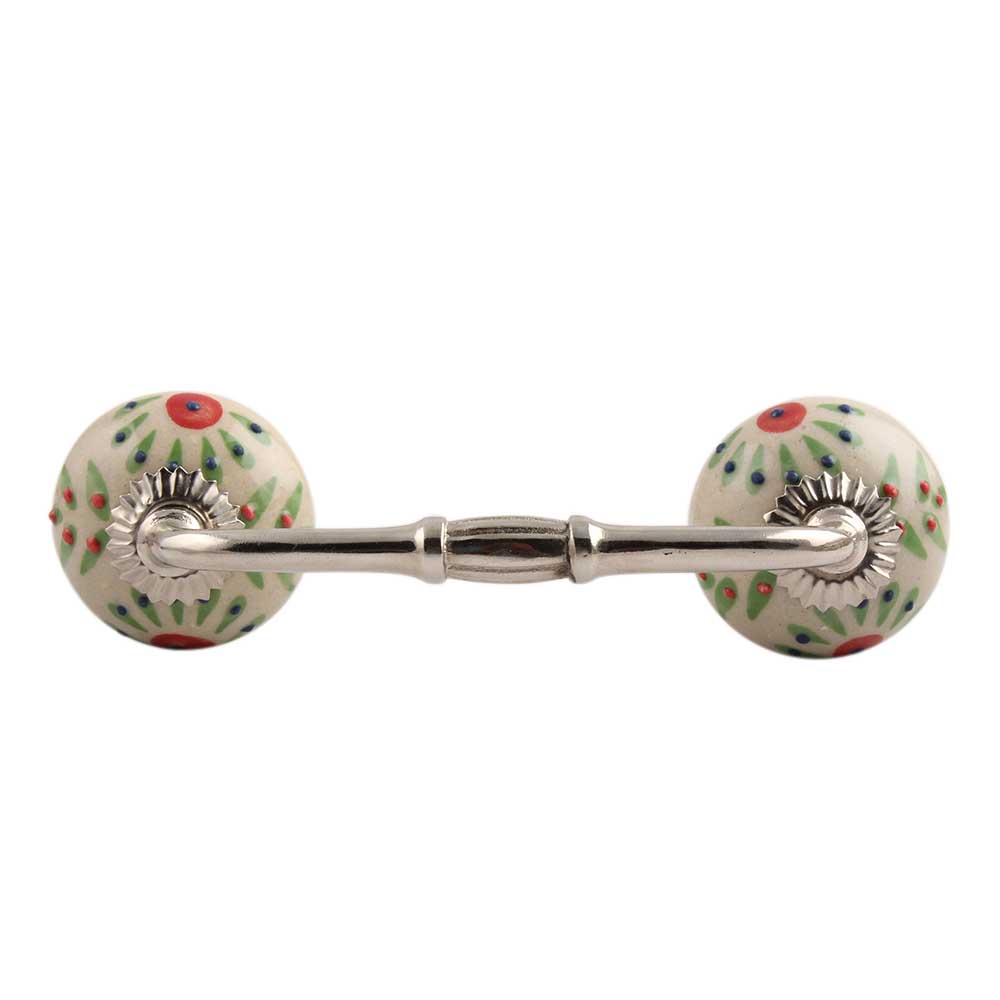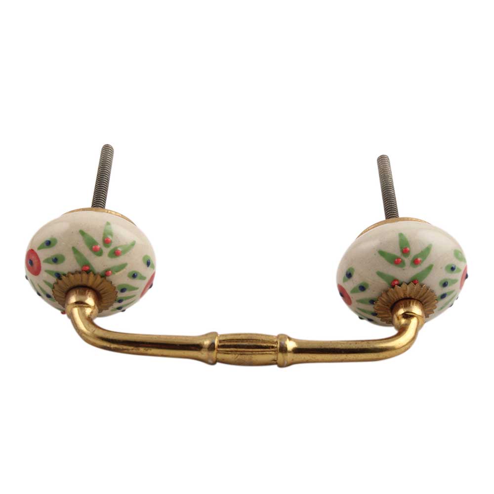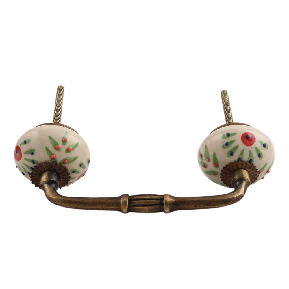 Pea Green Leaf Flower Ceramic Bridge Handle. Ideal for Drawer, Dresser, Cabinet, Wardrobe, Cupboard and Almirah.