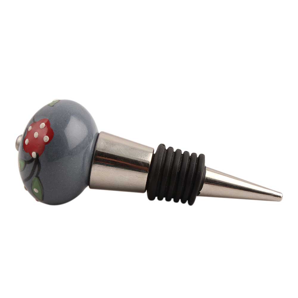 Pea Green Leaf Flower Ceramic Wine Stopper.zinc alloy wine bottle stopper with attractive Jute Bag Packaging.