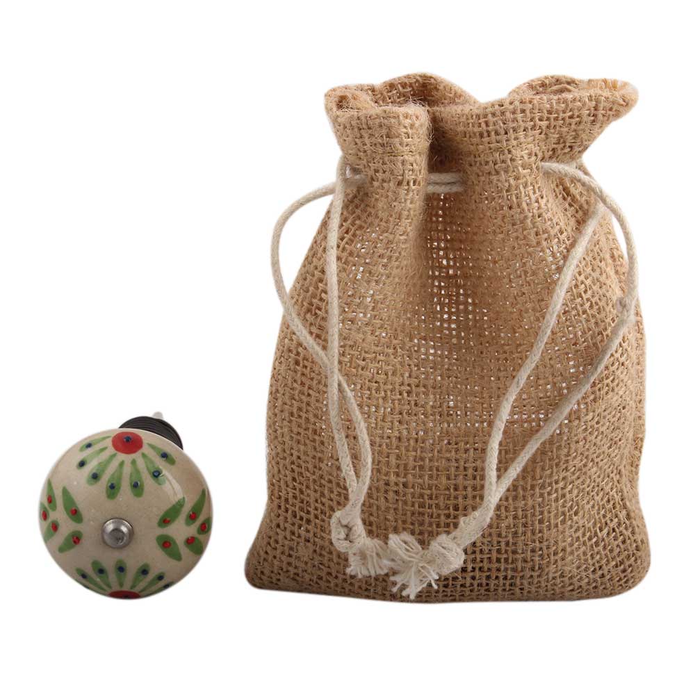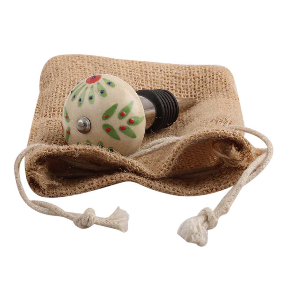 Pea Green Leaf Flower Ceramic Wine Stopper.zinc alloy wine bottle stopper with attractive Jute Bag Packaging.