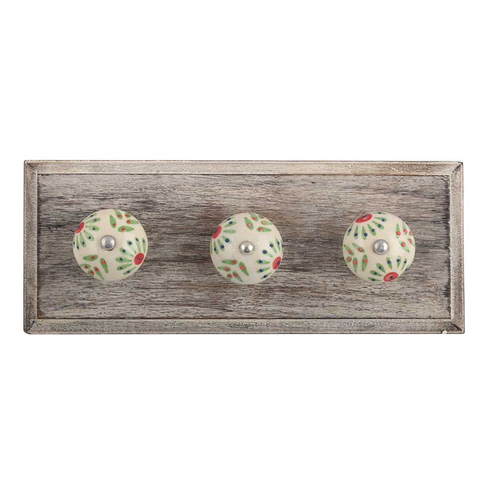 Pea Green Leaf Flower Ceramic Wooden Hook. A Perfect Complement to the Soft Tone of the Wood are these White Traditional Hat & Coat Hook Made of Genuine Porcelain and Brass. It can be use to Hang Jewellery, Leashes, Towels, Scarves, Light Weight Sweaters, Caps Etc.