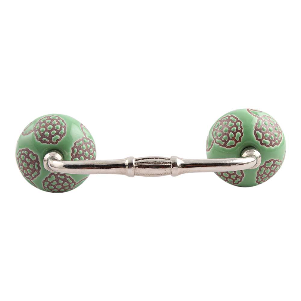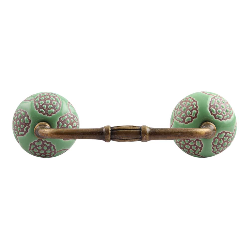 Pea Green Marigold Etched Ceramic Bridge Handle. Ideal for Drawer, Dresser, Cabinet, Wardrobe, Cupboard and Almirah.
