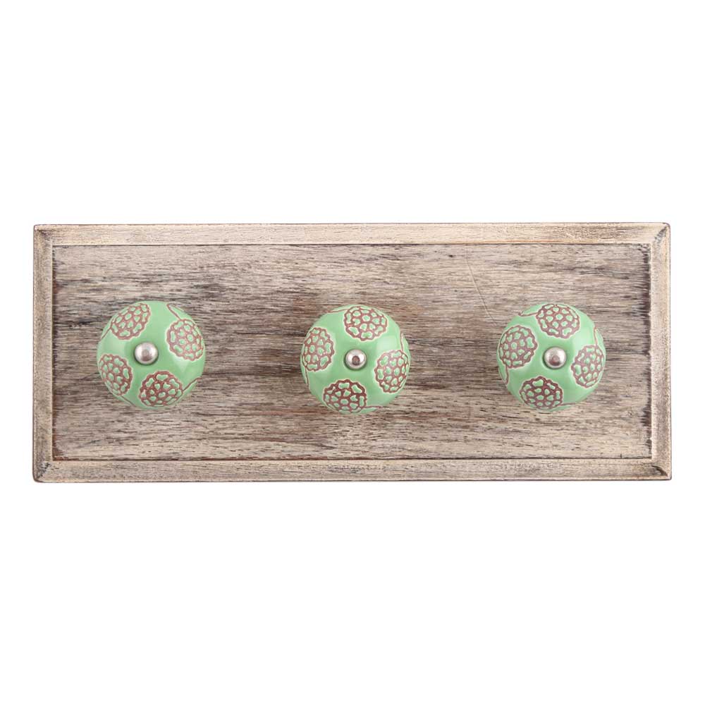 Pea Green Marigold Etched Ceramic Wooden Hook. A Perfect Complement to the Soft Tone of the Wood are these White Traditional Hat &Amp; Coat Hook Made of Genuine Porcelain and Brass. It can be use to Hang Jewellery, Leashes, Towels, Scarves, Light Weight Sweaters, Caps Etc.