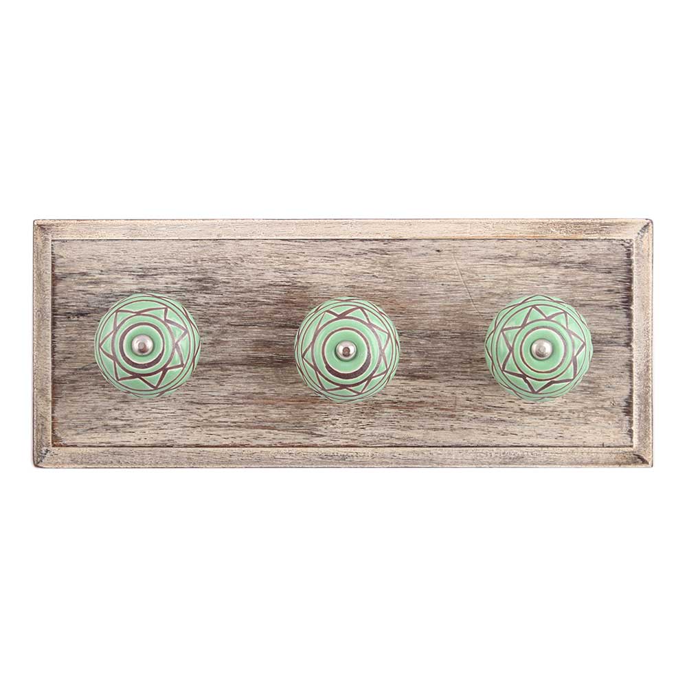 Pea Green Pattern Etched Ceramic Wooden Hook. A Perfect Complement to the Soft Tone of the Wood are these White Traditional Hat &Amp; Coat Hook Made of Genuine Porcelain and Brass. It can be use to Hang Jewellery, Leashes, Towels, Scarves, Light Weight Sweaters, Caps Etc.