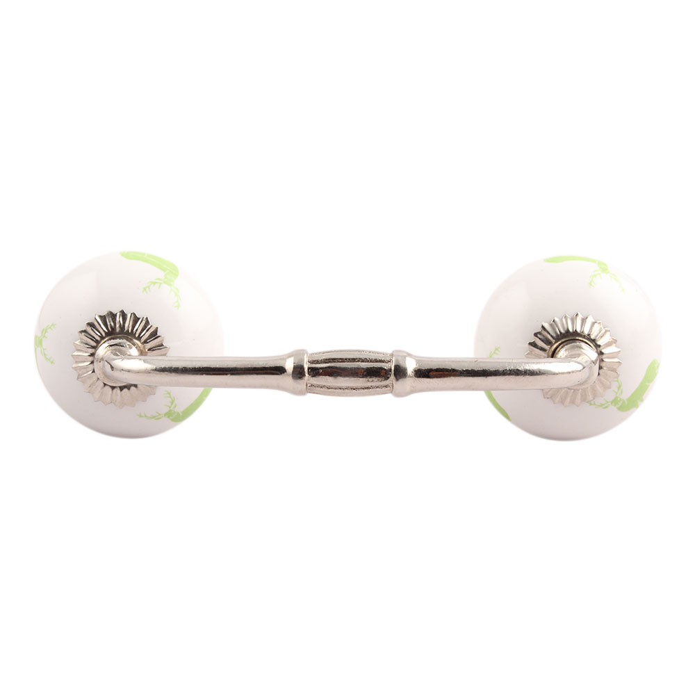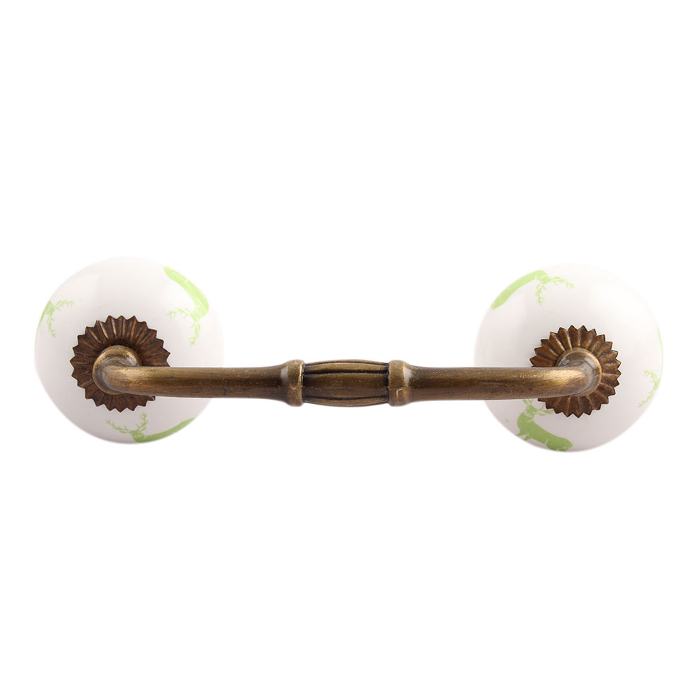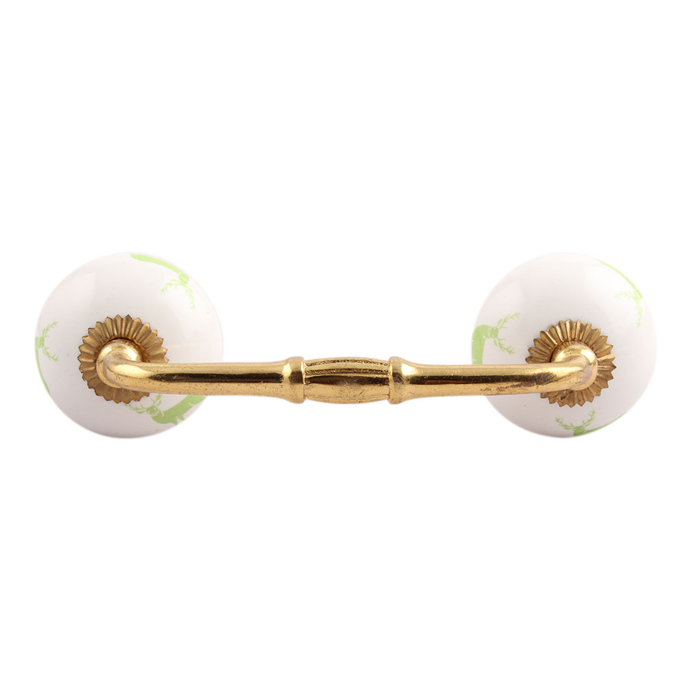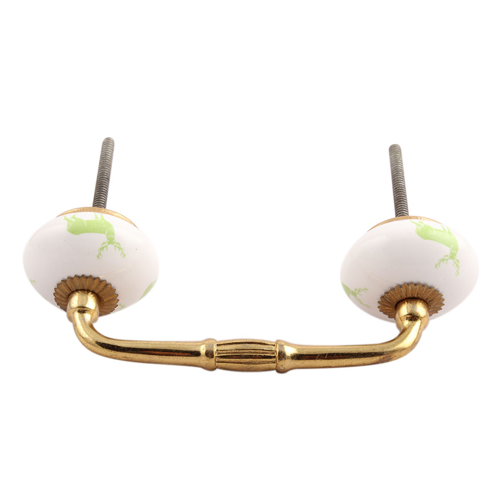 Pea Green Standing Rein Deer Pattern Ceramic Bridge Handle. Ideal for Drawer, Dresser, Cabinet, Wardrobe, Cupboard and Almirah.