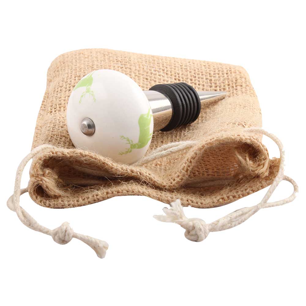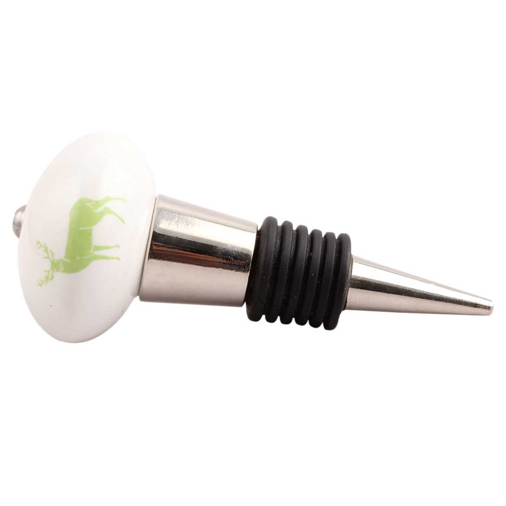 Pea Green Standing Rein Deer Pattern Ceramic Wine Stopper.zinc alloy wine bottle stopper.