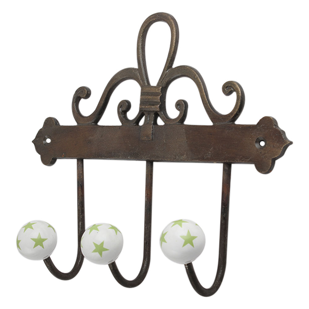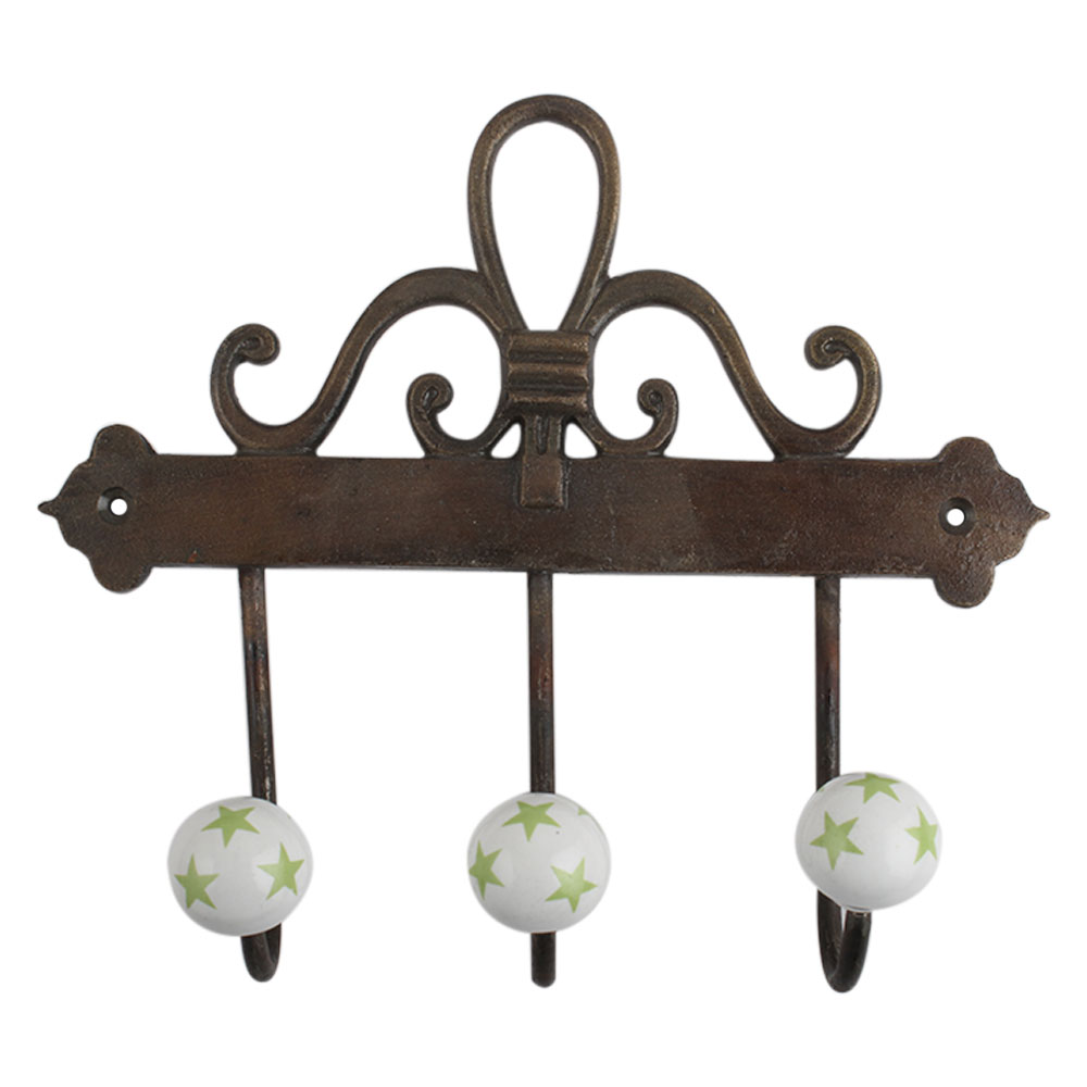 Pea Green Star Ceramic Iron Hook. A Perfect Complement to the Soft Tone of the Wood are these White Traditional Hat &Amp; Coat Hook Made of Genuine Porcelain and Brass. It can be use to Hang Jewellery, Leashes, Towels, Scarves, Light Weight Sweaters, Caps Etc.