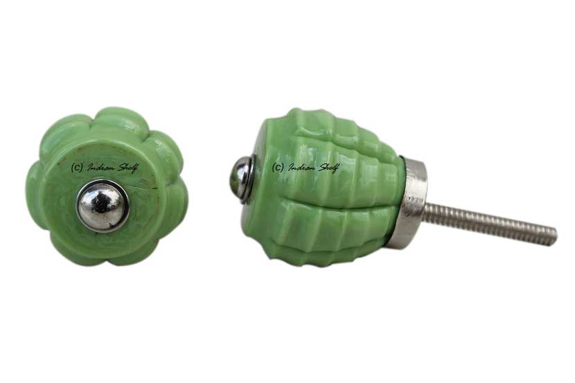Pea Green Step Glass Knobs. Ideal for Drawer, Dresser, Cabinet, Wardrobe, Cupboard and Almirah.