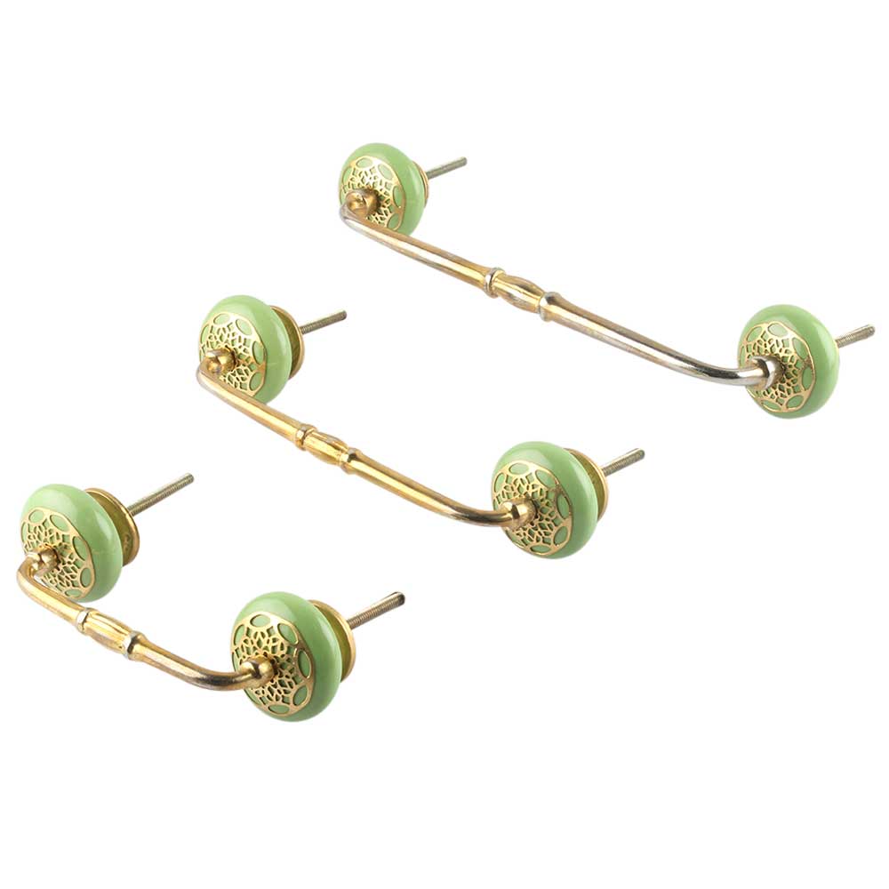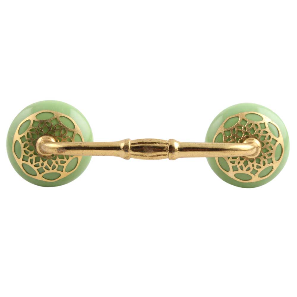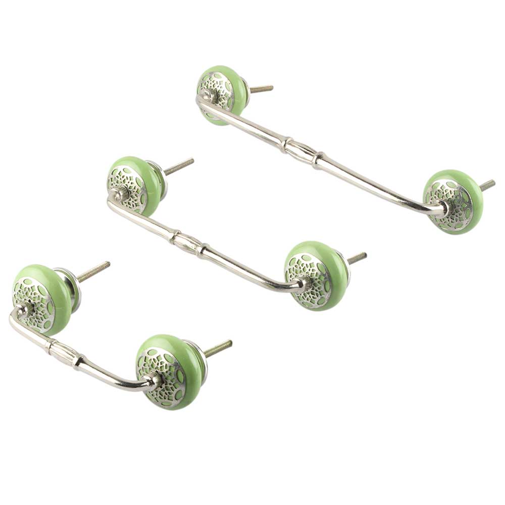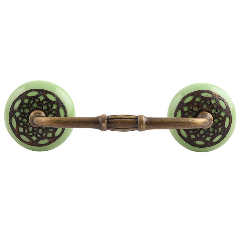 Pea Green Strewn Flat Ceramic Bridge Handle. Ideal for Drawer, Dresser, Cabinet, Wardrobe, Cupboard and Almirah.