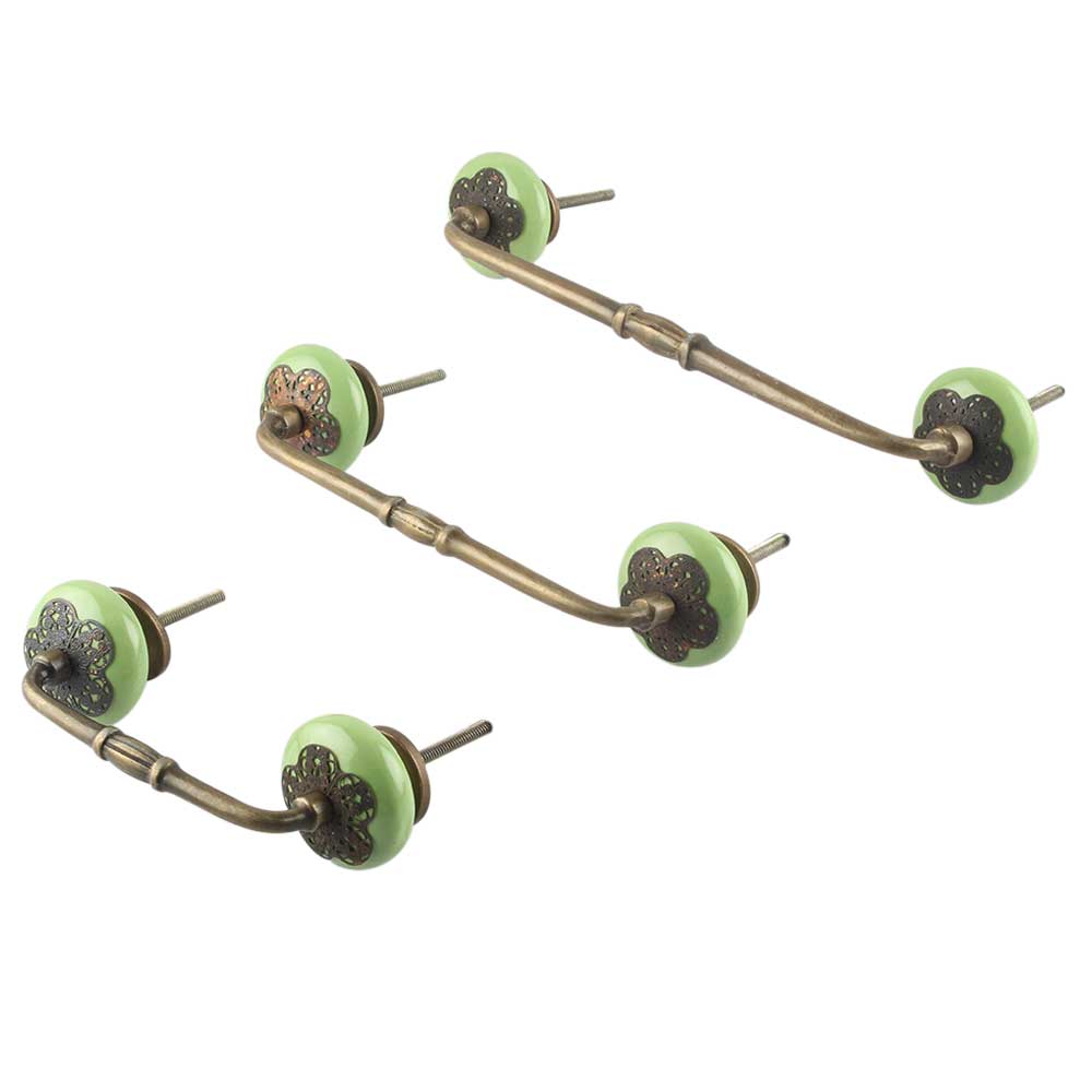 Pea Green Strewn Flat Ceramic Bridge Handle. Ideal for Drawer, Dresser, Cabinet, Wardrobe, Cupboard and Almirah.