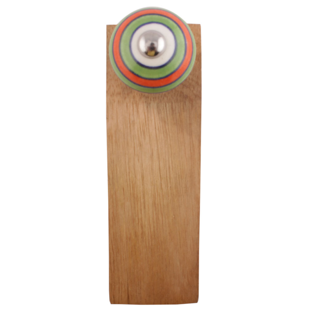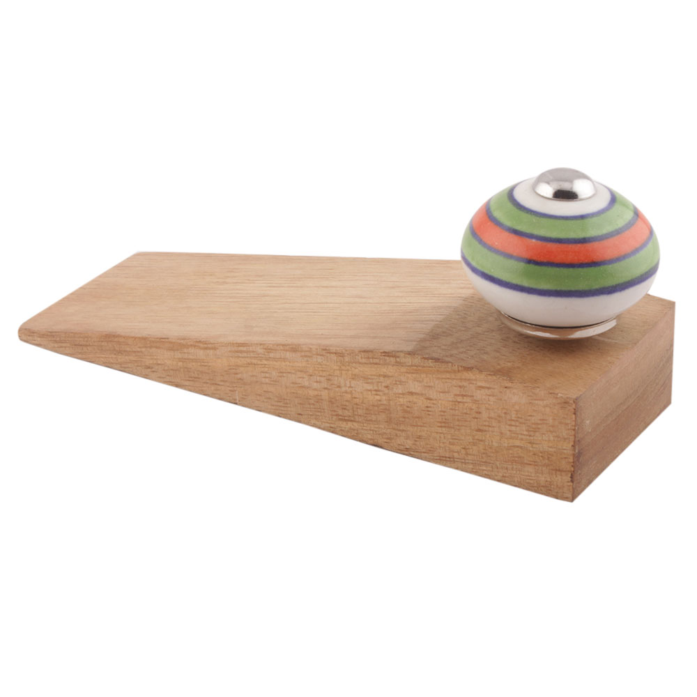 Handmade Ceramic and Wooden Door Stopper.Wooden Door Stopper with a Ceramic Knob to Carry it Easily. This Wooden Door Stopper has Glue Dots under it to Ensure that it does not Slip. It is Handmade by the Craftsmen of India and this Innovative Door Stopper won't Disappoint You.