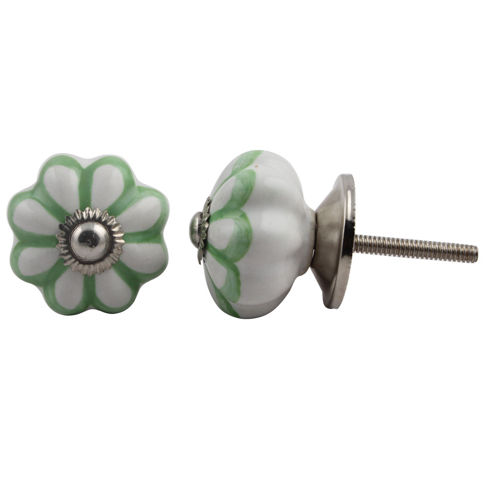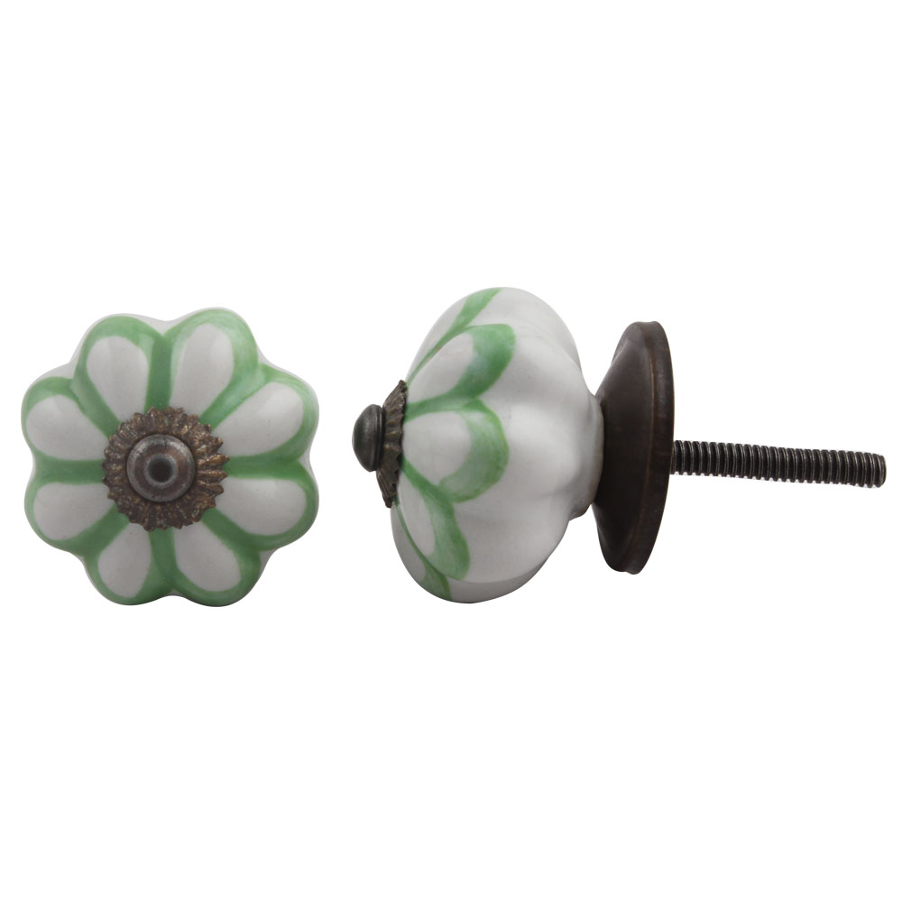 Pea Green Sunflower Medium Melon Ceramic knob. Ideal for kitchen cabinets, kitchen drawers, dining room, bed room, chest drawers, dressing tables, almirah