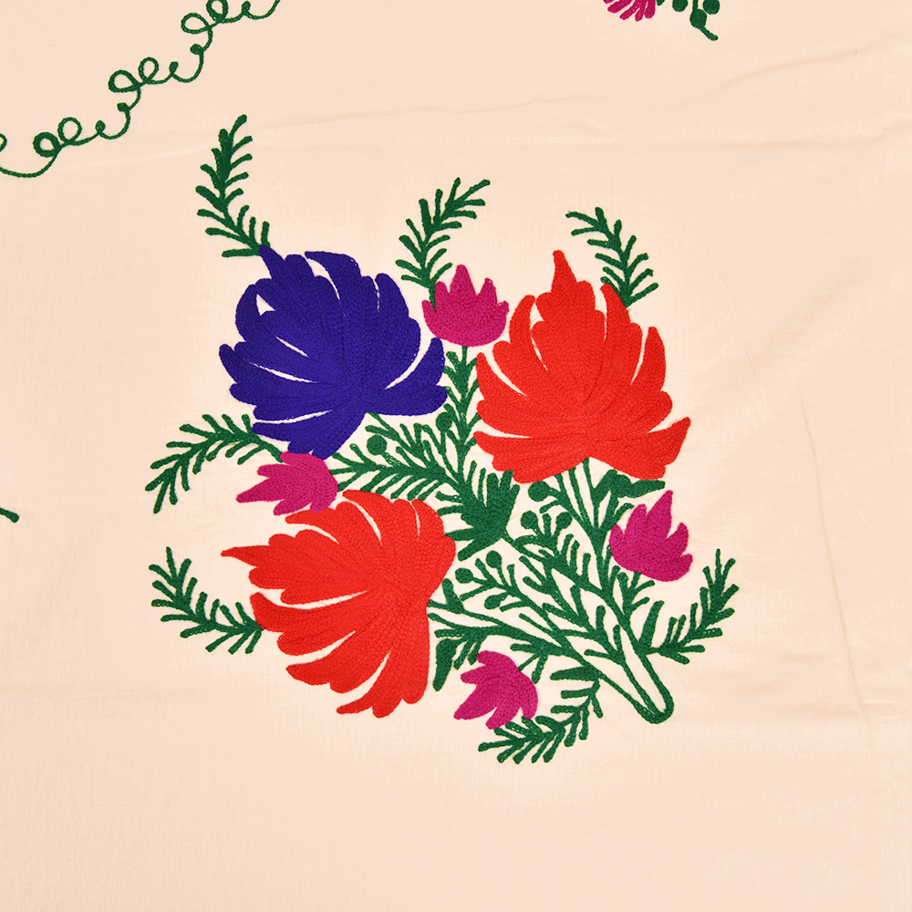 Peach Cotton Bedspread Decorative Big Floral Motifs With Two Pillow Covers.