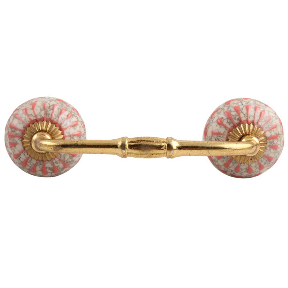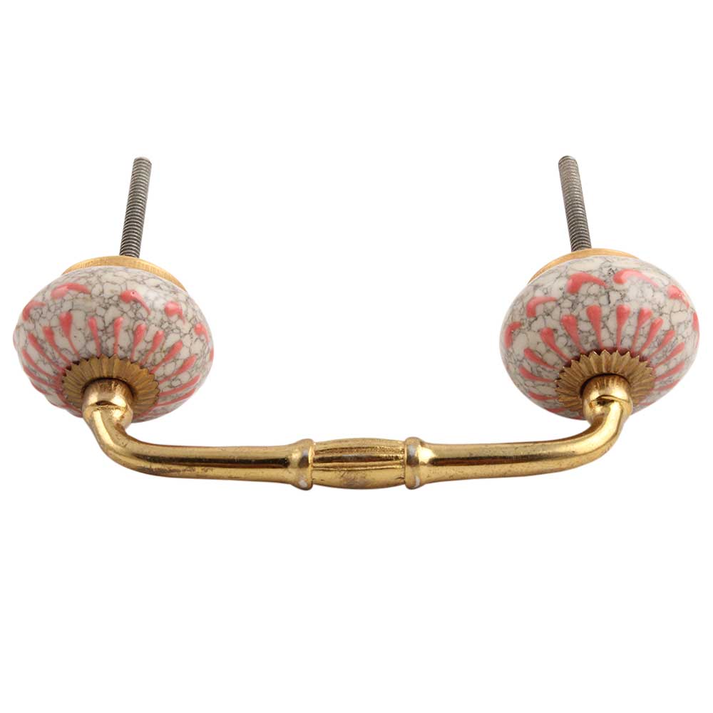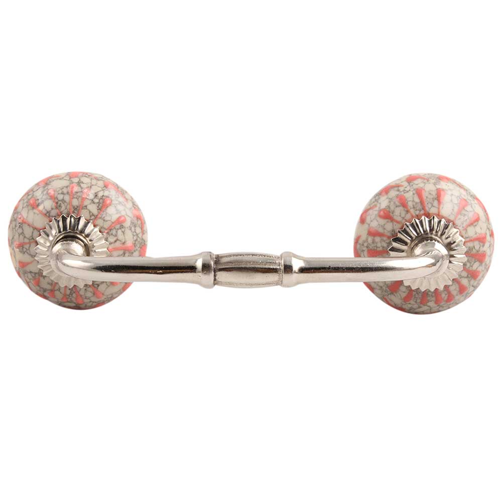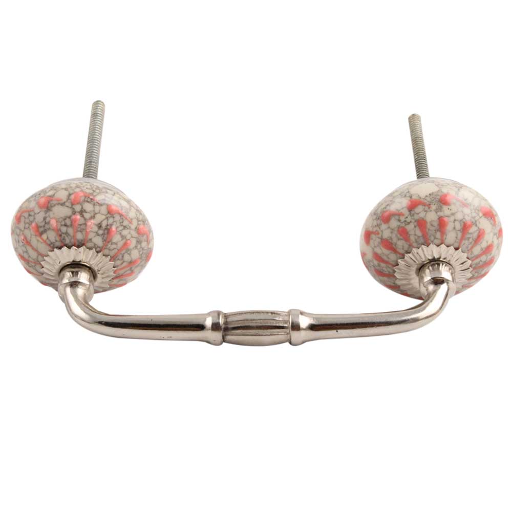 Peach Crackle Wheel Dresser Ceramic Bridge Handle.Ideal for kitchen Cabinet, kitchen Drawers, Dining Room, Bed Room, Chest Drawer, Dressing Table, Almirah.