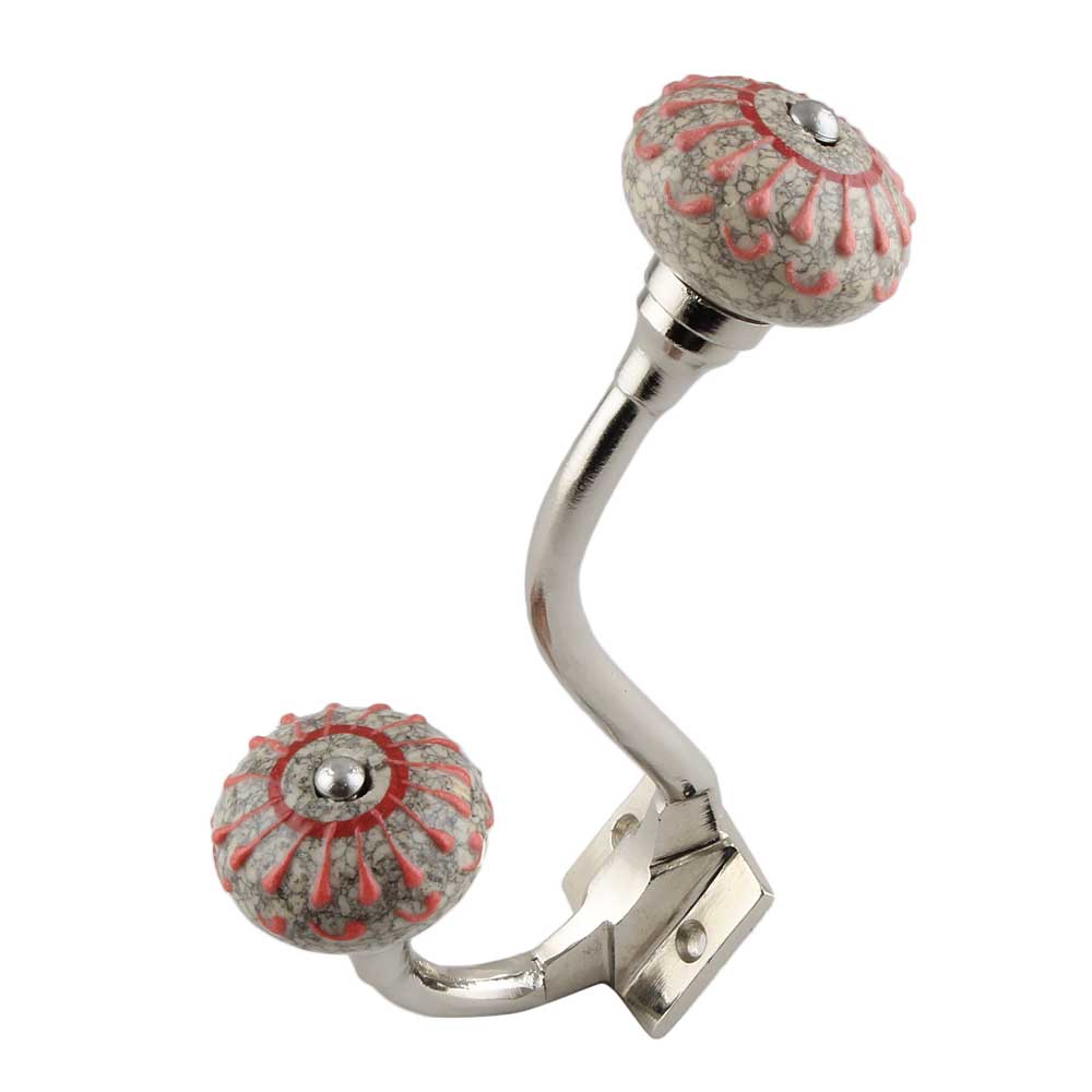 The Peach Crackle Wheel Dresser Ceramic Silver Iron Hook is a charming fusion of vintage detail and everyday practicality. Handcrafted with a wheel-shaped ceramic knob in a soothing peach hue and finished with a delicate crackle glaze, this decorative hook is paired with a brushed silver iron base for added sophistication. Whether enhancing a dresser, organizing a vanity space, or upgrading a hallway, this hook brings function and soft beauty to any space it touches.