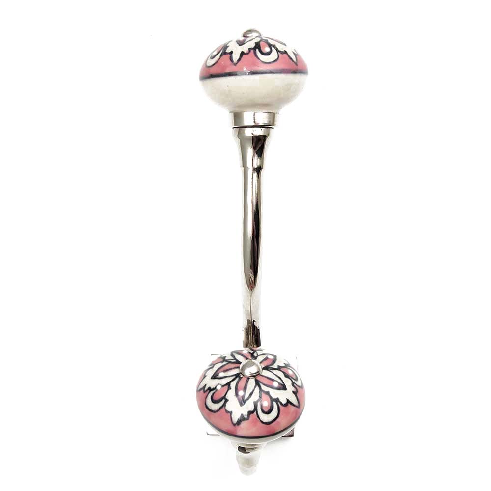 Material: Hand-glazed ceramic knob with solid iron base Finish: Glossy ceramic with peach flower painting; polished silver iron Installation: Wall-mounted with hidden screws and anchors included
