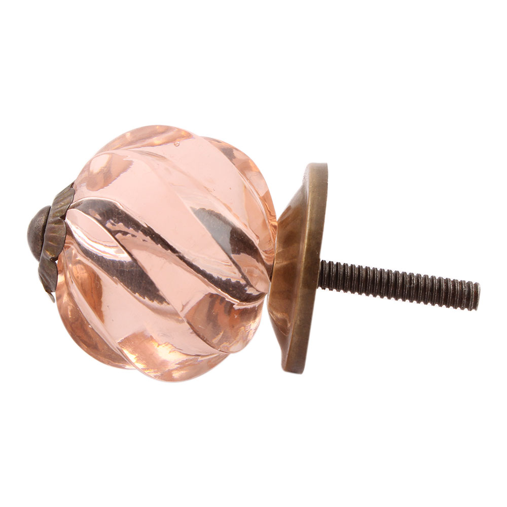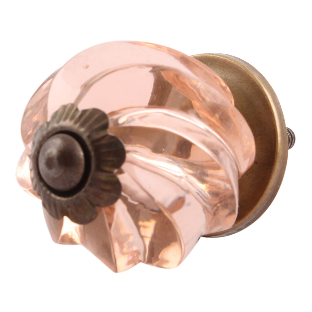 Peach Pink Interior Cut Glass Knobs. Ideal for Drawer, Dresser, Cabinet, Wardrobe, Cupboard and Almirah.