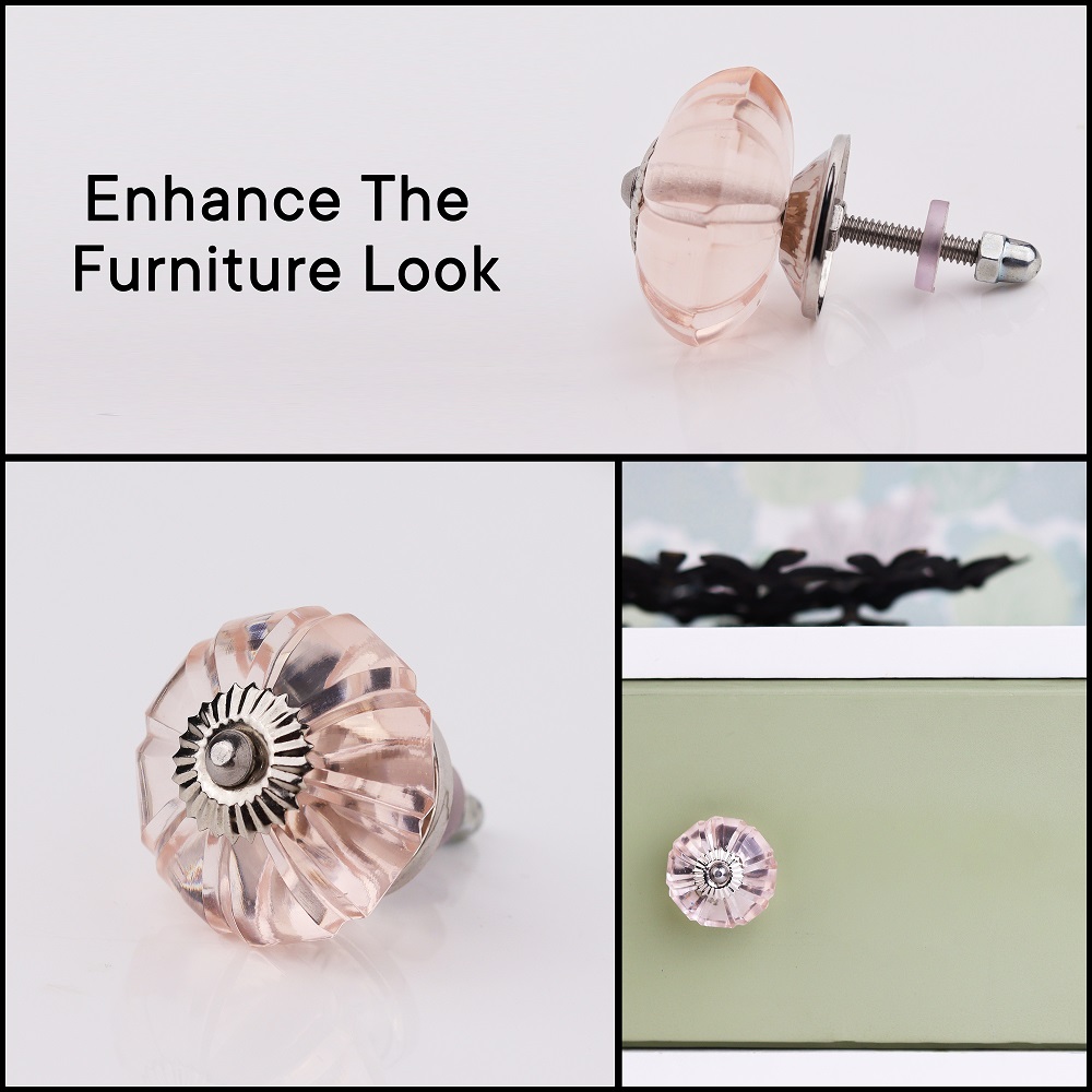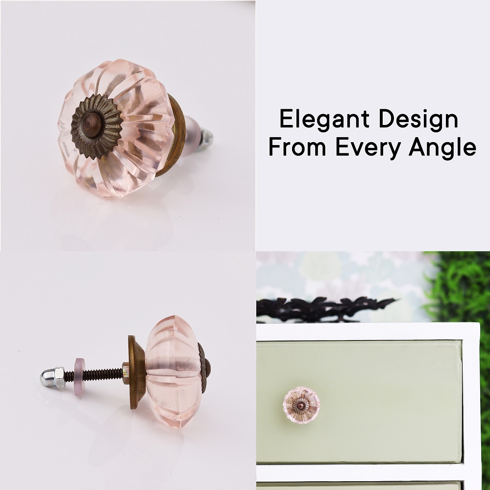 Pink Melon Glass Knobs. Ideal for Drawer, Dresser, Cabinet, Wardrobe, Cupboard and Almirah.