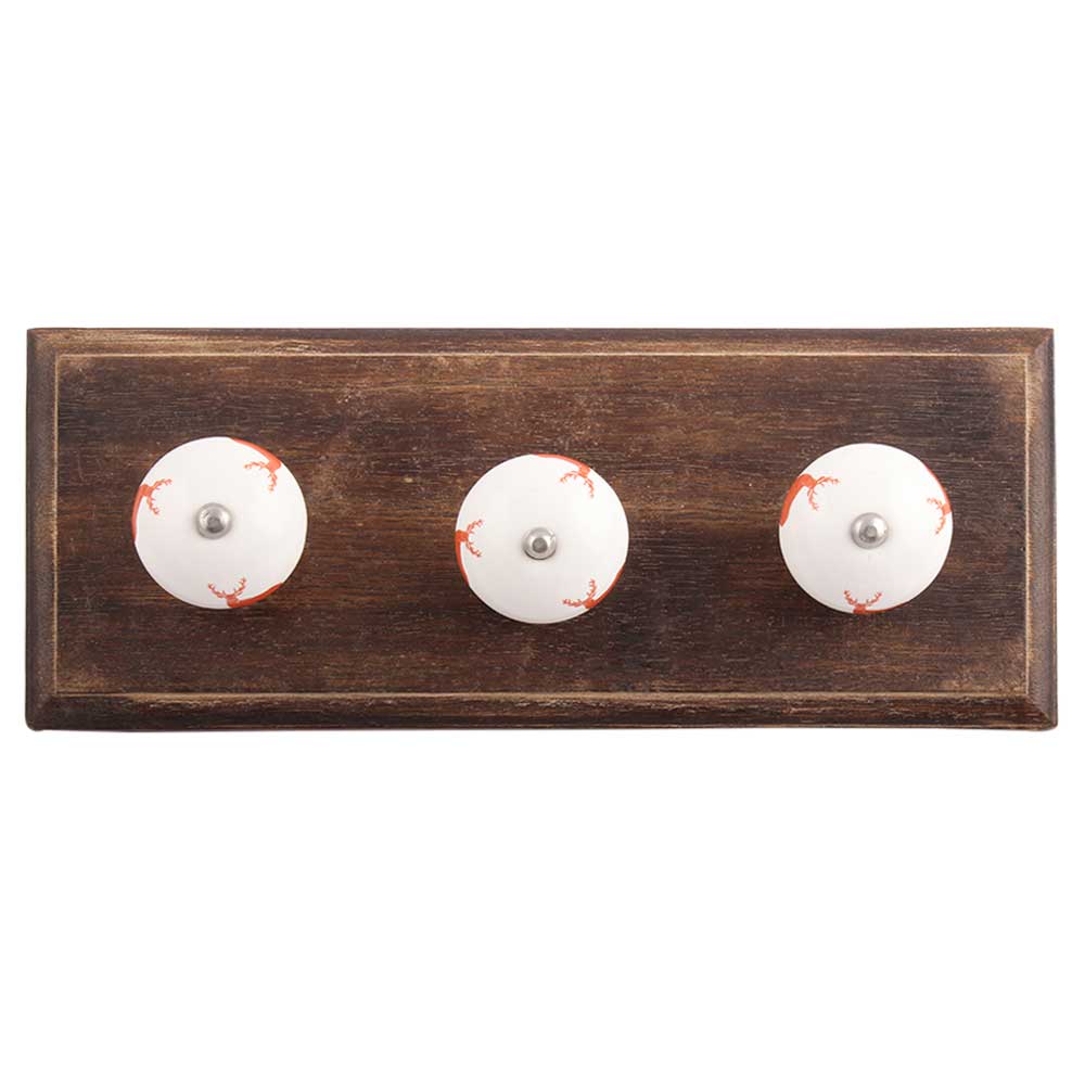 Peach Standing Rein Deer Pattern Ceramic Wooden Hook. A Perfect Complement to the Soft Tone of the Wood are these White Traditional Hat & Coat Hook Made of Genuine Porcelain and Brass. It can be use to Hang Jewellery, Leashes, Towels, Scarves, Light Weight Sweaters, Caps Etc.