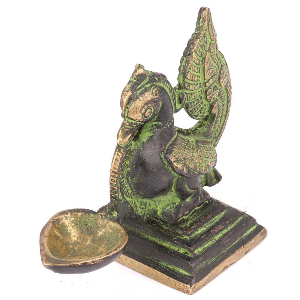 Vintage Style Brass Peacock Oil Lamp Diya Home Decor Craft Also Used During Diwali Decoration in Beautiful Patina Finish