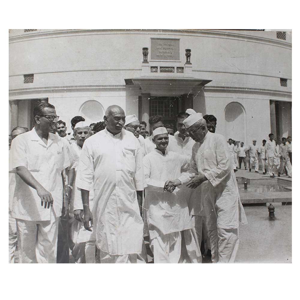 This is an old photograph of indian political leaders dressed in khadi clothes and shaking hands after attending a long parliament session. Interesting gift for your friends and family.