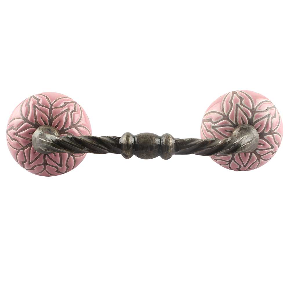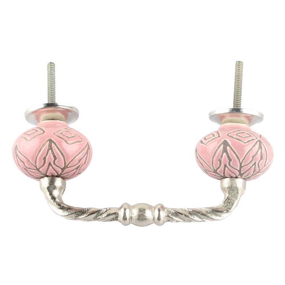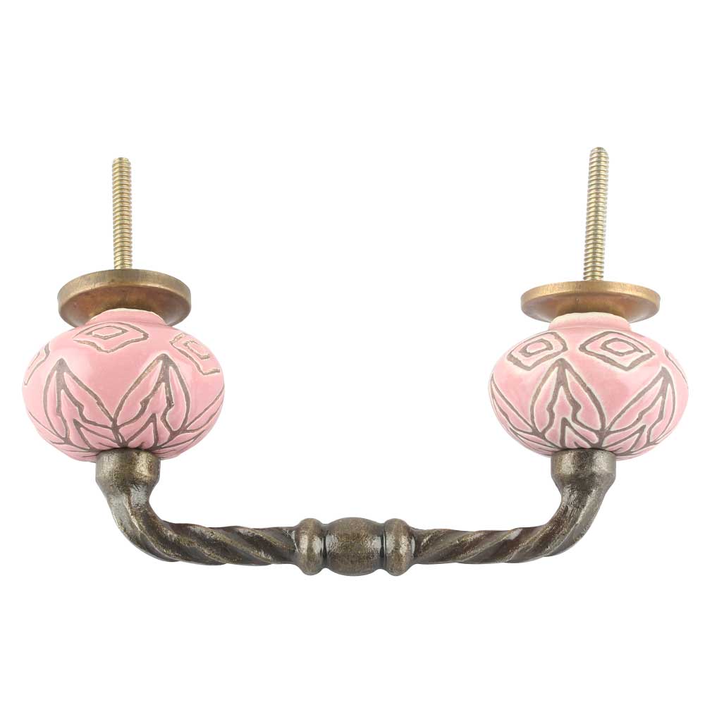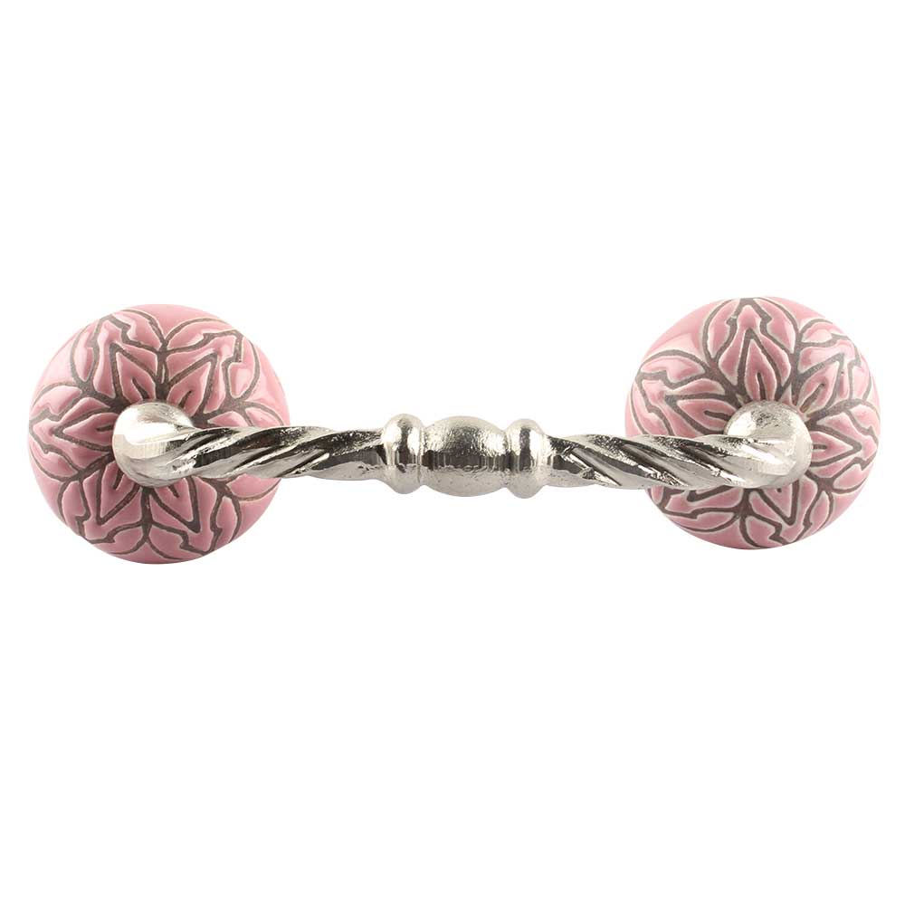 Pink Amarylis Floral Etched Ceramic Cut Bridge Handle Online. Ideal for Drawer, Dresser, Cabinet, Wardrobe, Cupboard and Almirah etc.