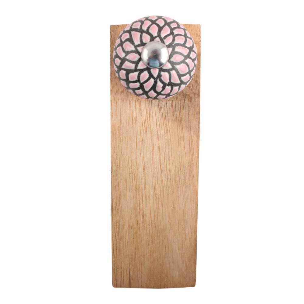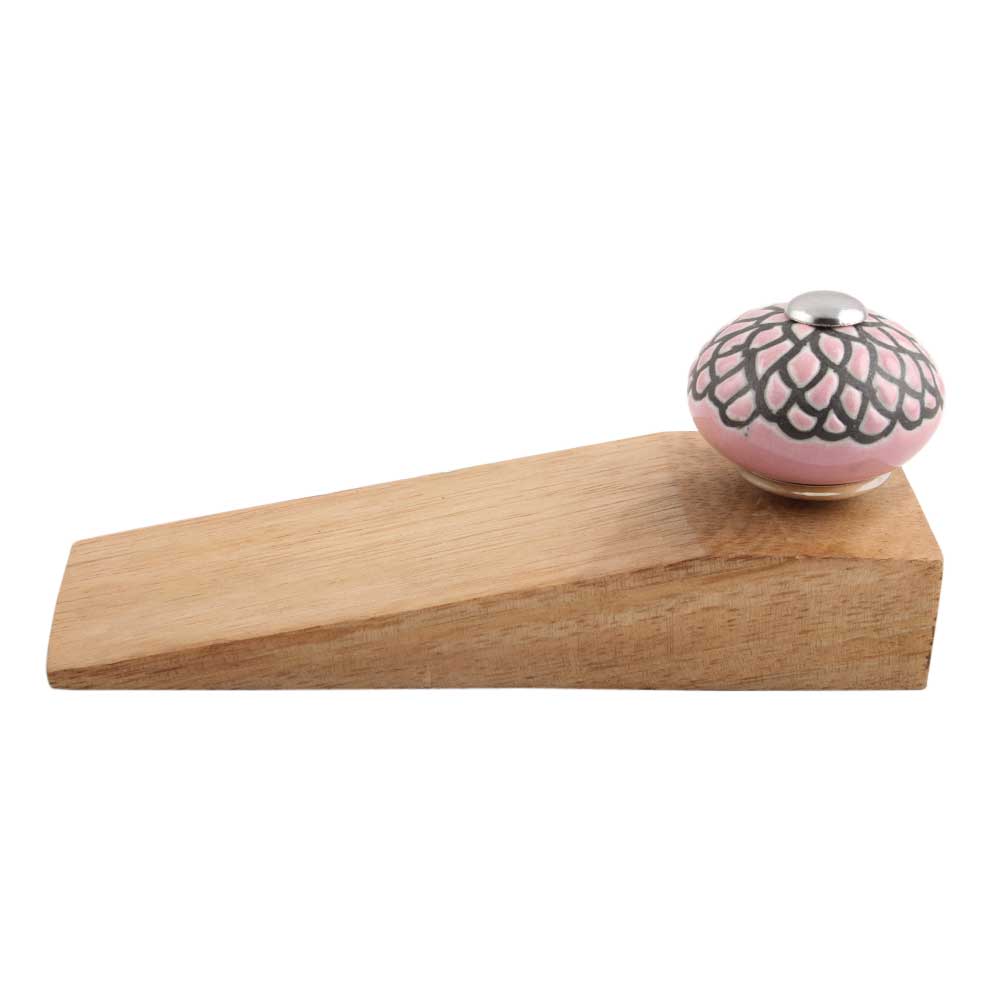 Pink And Black Etched Ceramic Wooden Door Stopper
