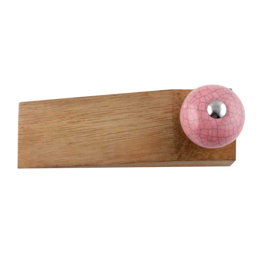 Pink Black Crackle Ceramic Wooden Door Stopper