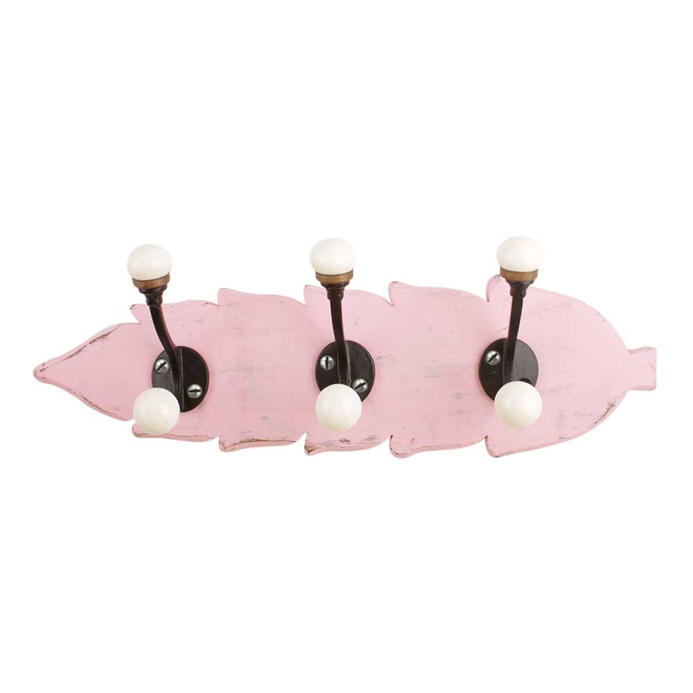 Pink Black Double Loop Ceramic Iron Wooden Hooks. A Perfect Complement to the Soft Tone of the Wood are these White Traditional Hat & Coat Hook Made of Genuine Porcelain and Brass. It can be use to Hang Jewellery, Leashes, Towels, Scarves, Light Weight Sweaters, Caps Etc.