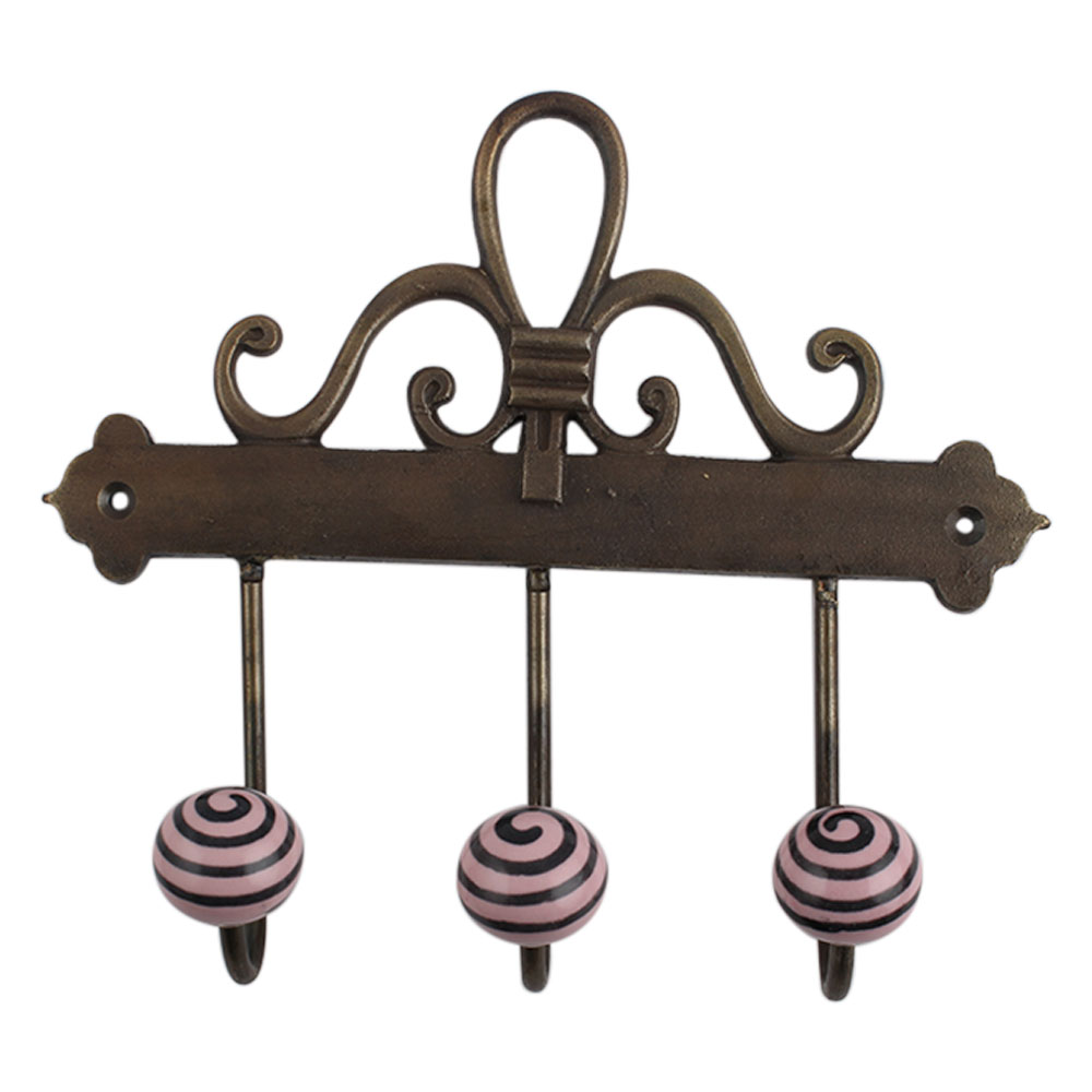 Pink Black Strip Ceramic Iron Hook. A Perfect Complement to the Soft Tone of the Wood are these White Traditional Hat & Coat Hook Made of Genuine Porcelain and Brass. It can be use to Hang Jewellery, Leashes, Towels, Scarves, Light Weight Sweaters, Caps Etc.