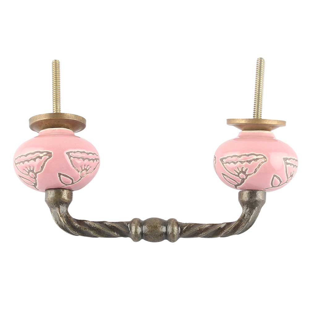 Pink Calla Lily Brown Etched Ceramic Cut Bridge Handle. Ideal for Drawer, Dresser, Cabinet, Wardrobe, Cupboard and Almirah etc.
