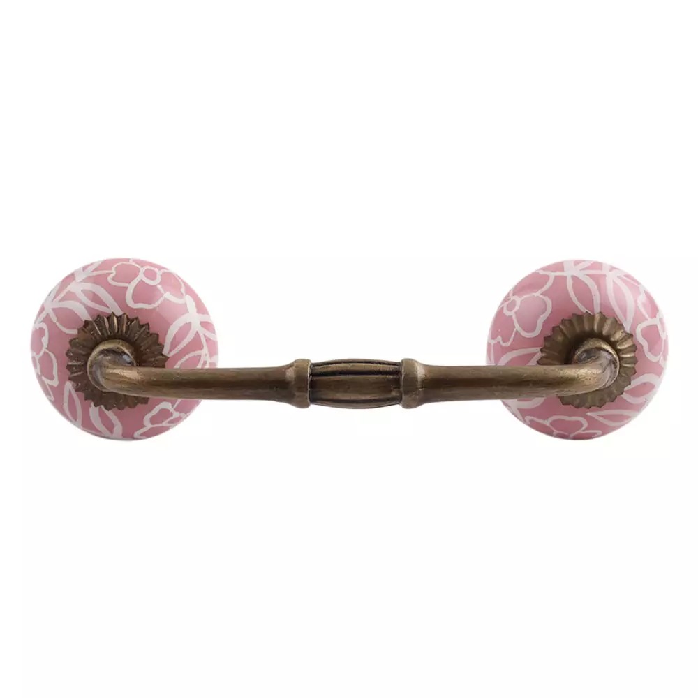 Pink Ceramic Bridge Dresser Handle. Ideal for Drawer, Dresser, Cabinet, Wardrobe, Cupboard and Almirah.