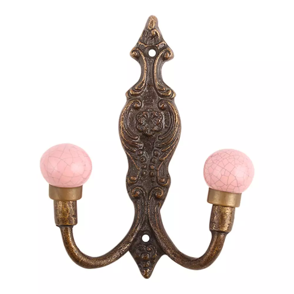 Pink Crackle Ceramic Iron Hook. When Put on Wall or Cabinet It Gives A Sturdy Look. This Hook is Strong Enough to Hold Your Cloths, Keys, Tea Cups, Coffee Mugs, Hand Towels Etc