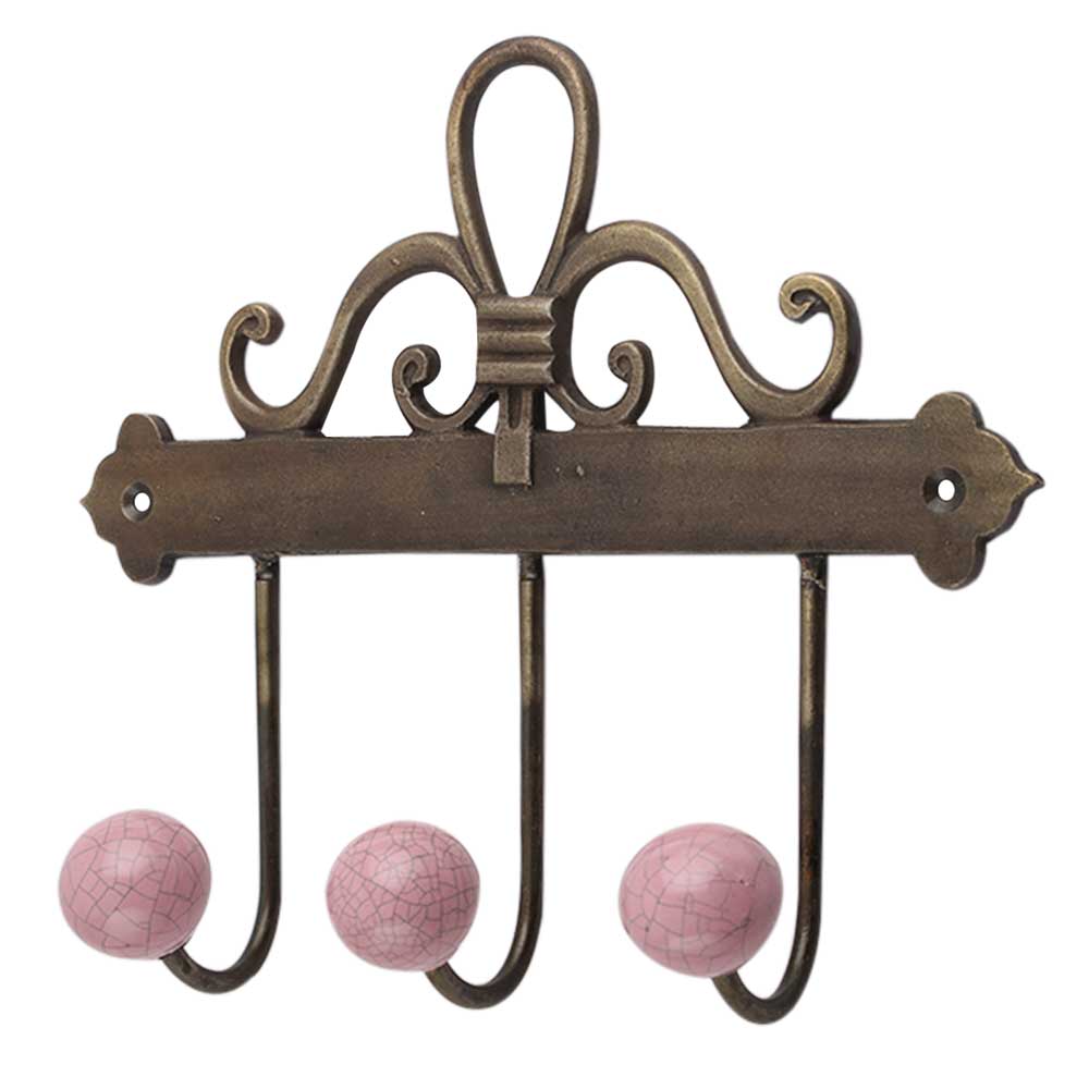 Pink Crackle Ceramic Iron Hook. A Perfect Complement to the Soft Tone of the Wood are these White Traditional Hat & Coat Hook Made of Genuine Porcelain and Brass. It can be use to Hang Jewellery, Leashes, Towels, Scarves, Light Weight Sweaters, Caps Etc.